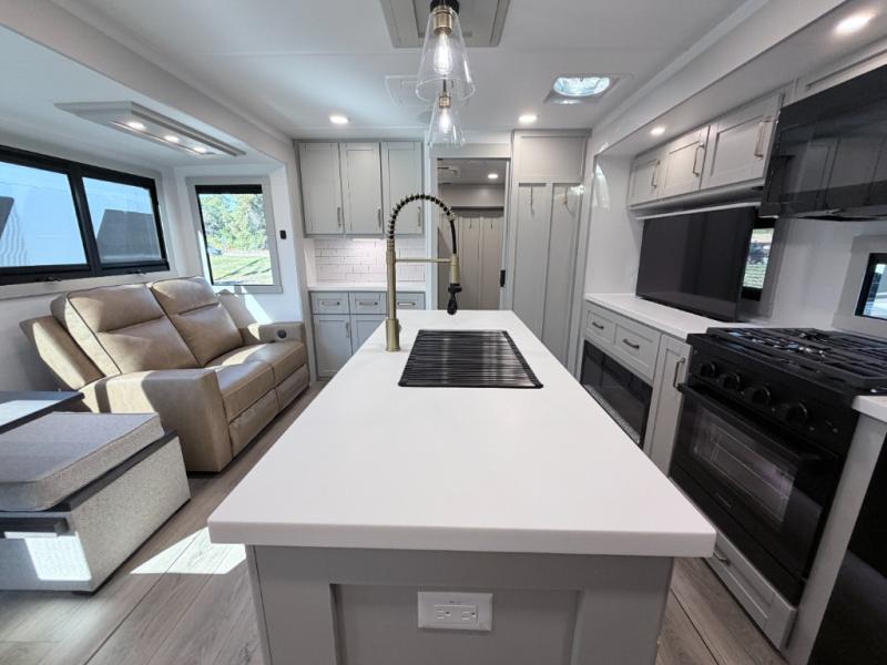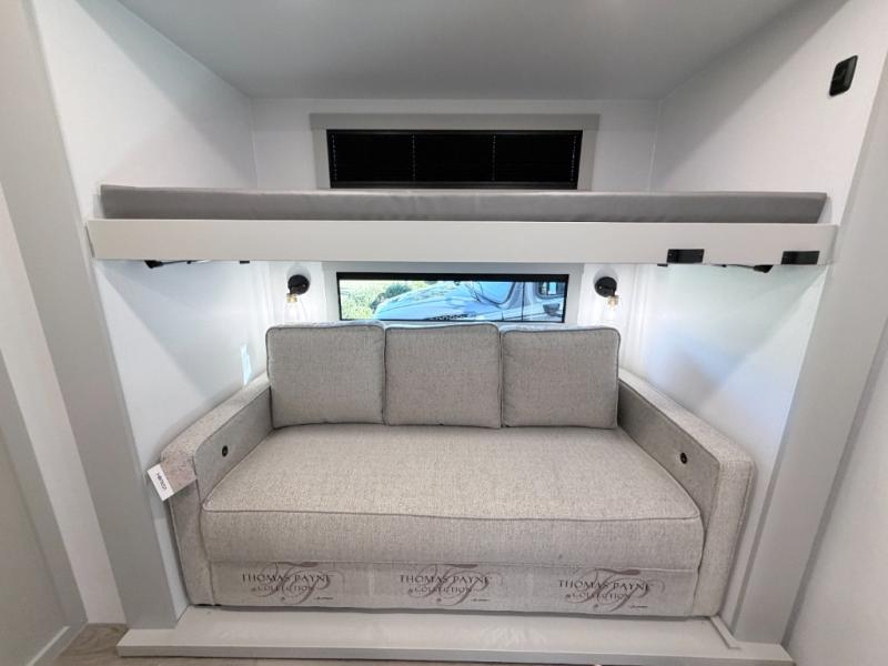 The Brinkley Model Z Air 315 delivers outstanding comfort for families with its spacious bunkhouse, triple slides, upscale interior amenities, and premium construction. With an 18K variable speed second A/C and anti-lock brakes with sway control, this travel trailer excels in both comfort and towing safety, making it an exceptional option for long trips and weekend camping alike.