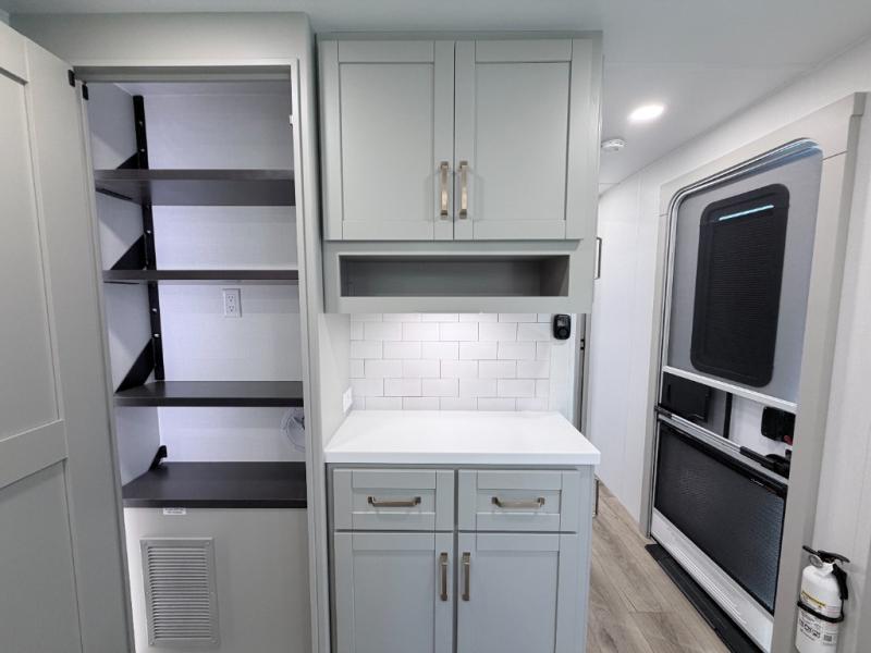 - Pantry with adjustable shelves and a full hutch for extra storage