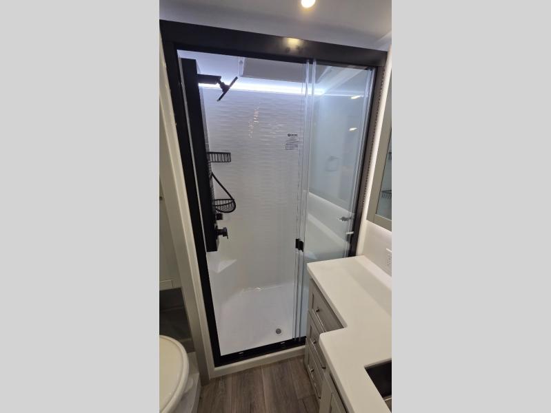 The Brinkley mid-profile Model Z fifth wheels bring you clean lines and an upscale look with plenty of style and exciting new features like the industry first brass plumbing connections. These units also feature an automotive grade front cap, plenty of exterior storage, dual exterior hot and cold showers, and wide stance leveling jacks for easy set up. Residential frameless windows provide a clean look and beautiful views, and ample electrical outlets and 6 USB/USB-C outlets allow all of your electronics and appliances to easily be used and charged.