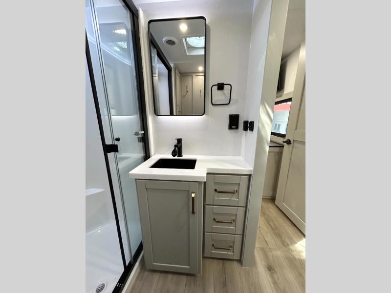 The Brinkley mid-profile Model Z fifth wheels bring you clean lines and an upscale look with plenty of style and exciting new features like the industry first brass plumbing connections. These units also feature an automotive grade front cap, plenty of exterior storage, dual exterior hot and cold showers, and wide stance leveling jacks for easy set up. Residential frameless windows provide a clean look and beautiful views, and ample electrical outlets and 6 USB/USB-C outlets allow all of your electronics and appliances to easily be used and charged.