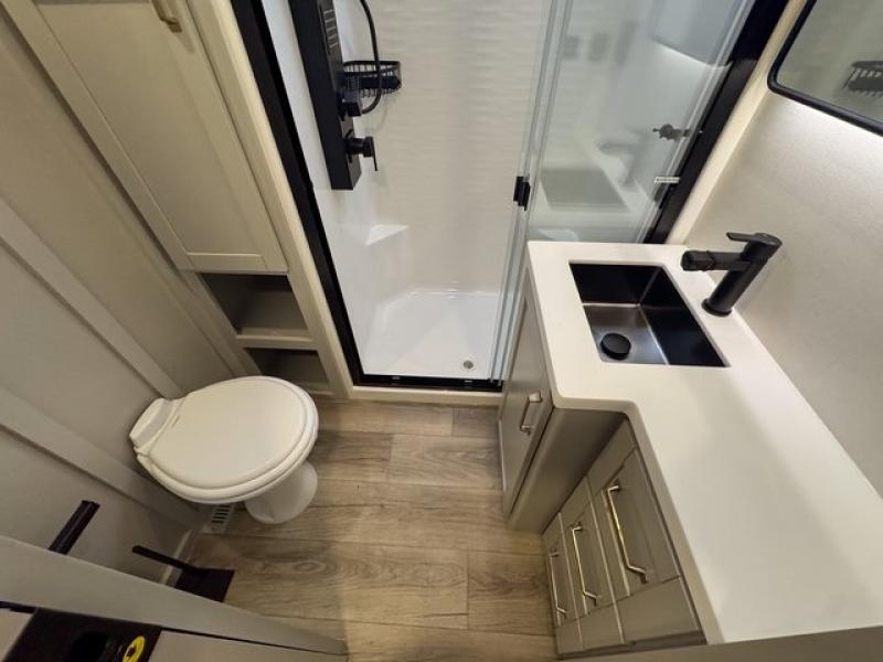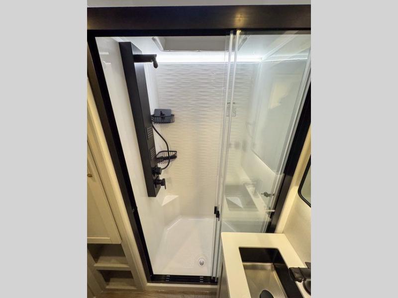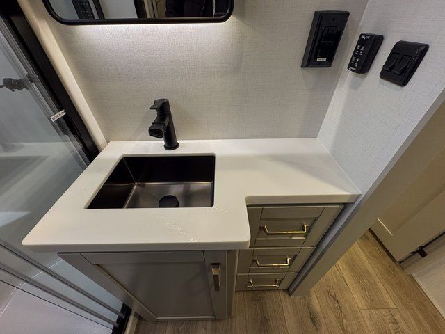 The Brinkley mid-profile Model Z fifth wheels bring you clean lines and an upscale look with plenty of style and exciting new features like the industry first brass plumbing connections. These units also feature an automotive grade front cap, plenty of exterior storage, dual exterior hot and cold showers, and wide stance leveling jacks for easy set up. Residential frameless windows provide a clean look and beautiful views, and ample electrical outlets and 6 USB/USB-C outlets allow all of your electronics and appliances to easily be used and charged.