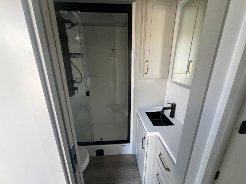 With any Model Z Air travel trailer by Brinkley, you will enjoy premium features at every turn. The industry-first low maintenance roof is sure to be appreciated, plus there are industry-first brass plumbing connections for excellent resistance to corrosion. The drop-frame chassis with a massive pass-through bay will allow you to bring along camp gear galore, plus there are motion lighting and power outlets for added convenience! You'll also find two hot/cold showers outdoors, along with a 370-watt solar panel and a premium utility center with a retractable 65' water hose to wash off mud from the lake. The interior is just as accommodating with its solid surface countertops, Brinkley CraftSense wood trim construction, integrated blackout window shades, and the list of luxury features goes on!