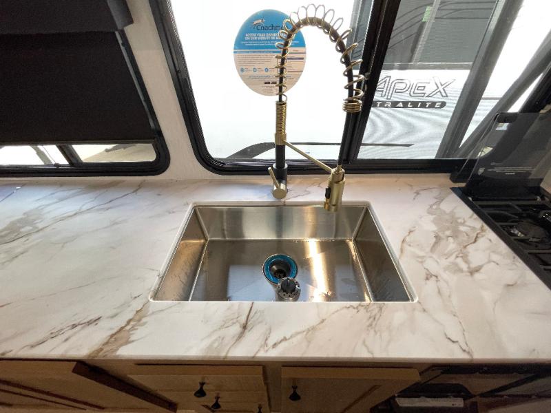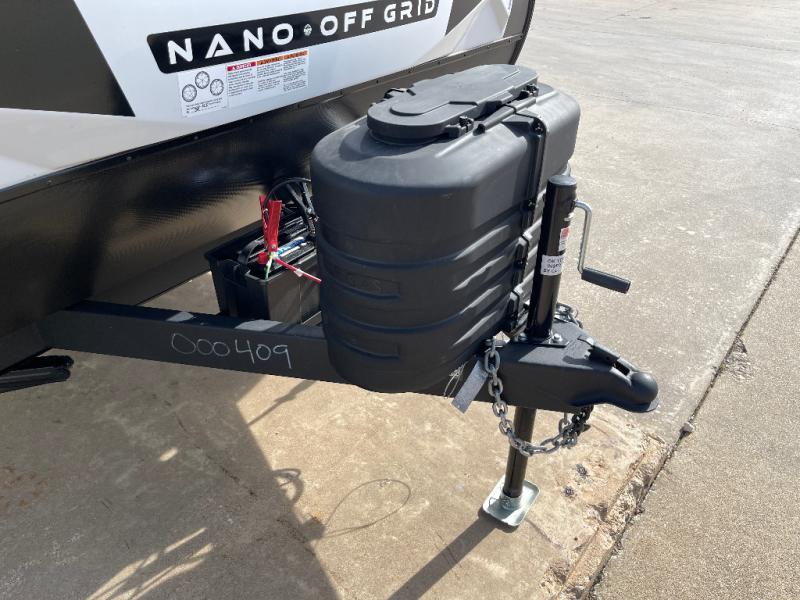 You will find comfort, convenience, and a sturdy construction with each of these Coachmen RV Apex Nano travel trailers! They are held together with an aluma-cage construction, an I-beam chassis, plus vacuum-bonded laminated dual Azdel fiberglass walls for double the protection against the elements. The 400-watt solar panel with a 30-amp control charger is included, along with two 20 lb. LP tanks, a high velocity power roof vent, plus 12V outlets to keep you powered up. More exterior features include a hot/cold shower, four stabilizer jacks, a power awning with LED lighting, and radius thumb latch baggage doors to easily pack and unload your gear. You will love the interior of your Apex Nano with Congoleum residential flooring, one-piece seamless edge countertops, matte black hardware in the galley, and a hand-crafted wood medicine cabinet in the bath.