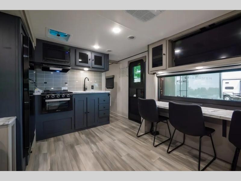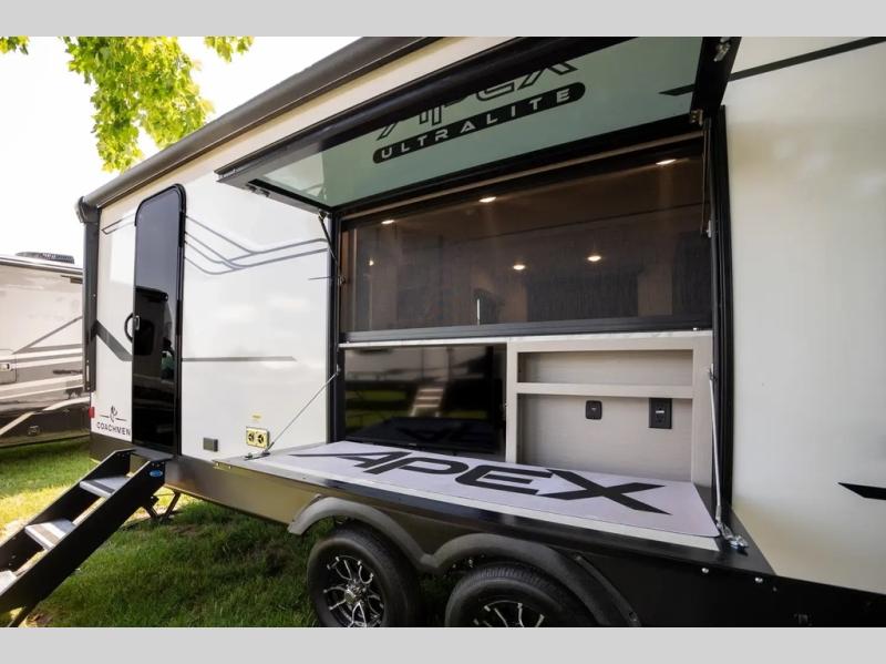 Lightweight living and camping is found with the Apex Ultra-Lite travel trailers by Coachmen. These eco-friendly units are made to last thanks to the Azdel composite sidewalls, the laminated aluminum floor, and the vacuum-bonded laminated trussed roof. Super lube axles make towing easier than ever, plus there is a friction hinge entrance door, a 200-watt solar panel with a 30 Amp control charger, and slam latch baggage door catches for easy unloading. Some of the interior comforts you'll fall in love with are the one-piece seamless edge countertops, the hard valances with roller shades, the matte black hardware, and the Casino Bisque cabinetry. The Apex Ultra-Lite trailers also include a USB charge station, plus a digital TV antenna with cable hook-ups and Wi-Fi capability for the option to stay connected as you camp!