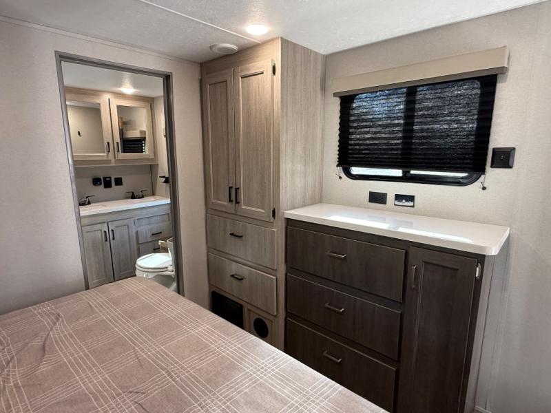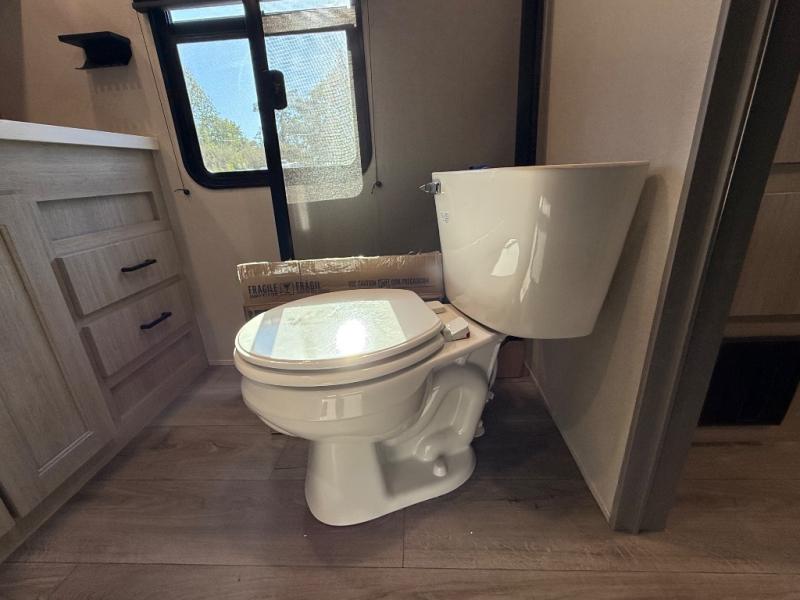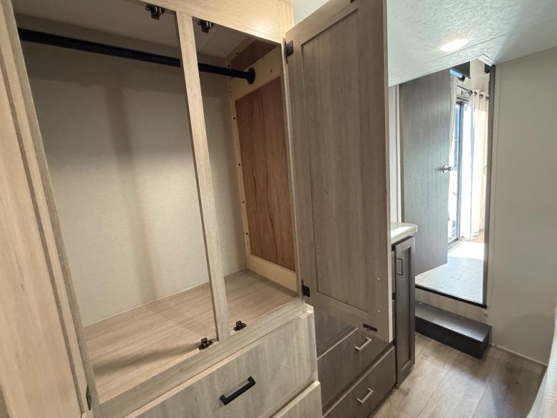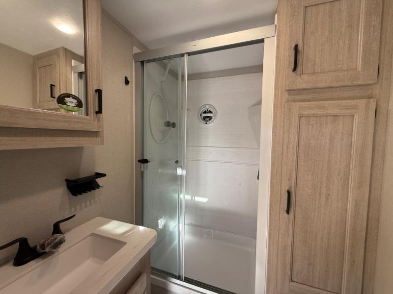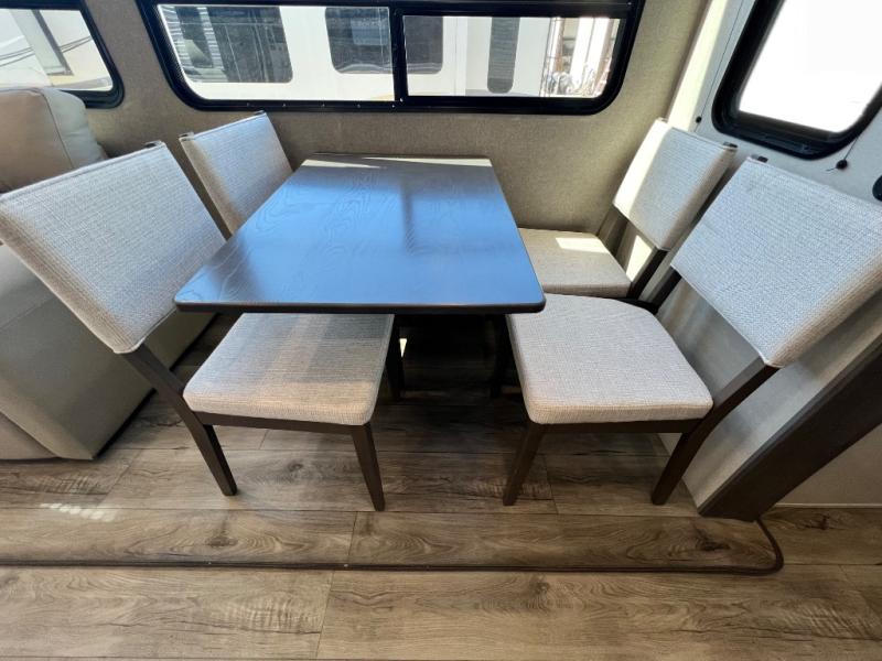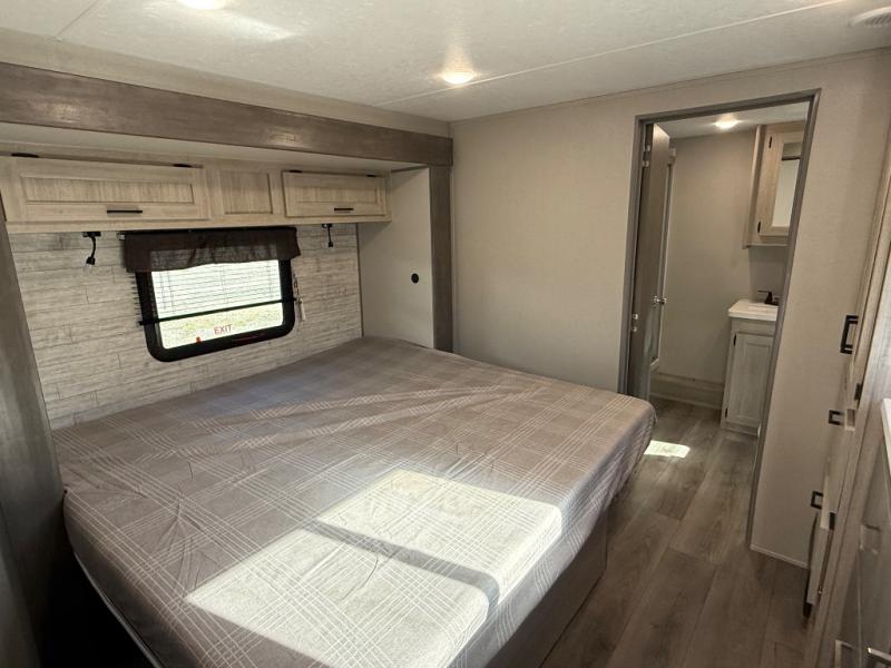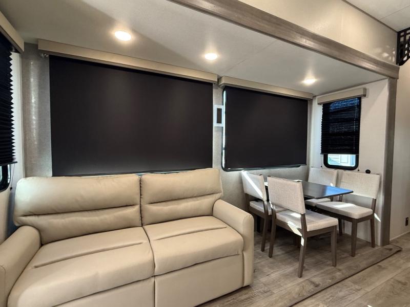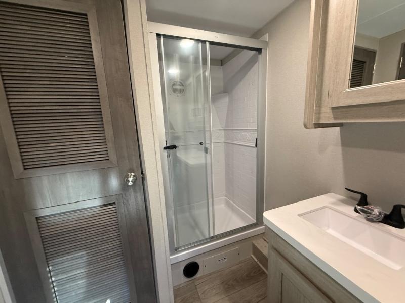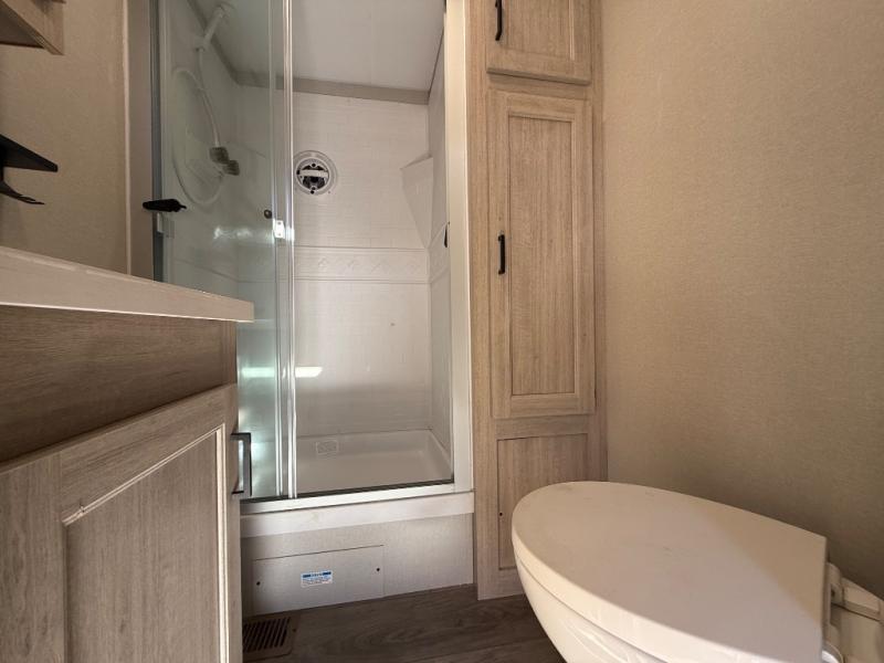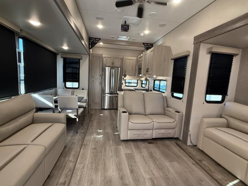 If you want to get out of the house without missing the comfort, you will love this destination trailer! Feel at home the moment you step in through the patio door and head to the open living area with opposing slide-outs making room for tons of seating areas to enjoy quality time by the fireplace with your guests. You will fall in love with the residential style kitchen featuring a 4 burner range, French door refrigerator, pantry, and much more to make your favorite recipes on the go. There is no such thing as too many guests when you have a loft that has two queen beds and a 28 x 64 bunk matt to rest. In the main floor you will have a master bedroom all to yourself that has its own private bath offering comfort and convenience at only a few steps away from your king bed.