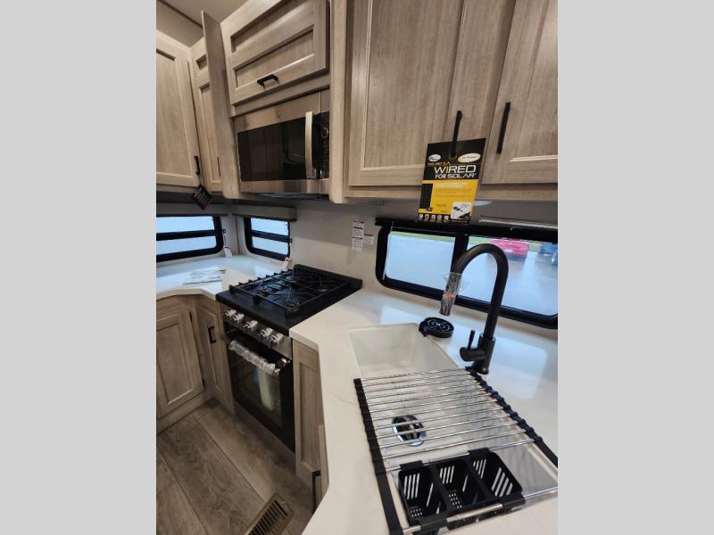 With any Catalina Destination trailer by Coachmen, you will enjoy comfortable extended stays wherever you decide to set up camp! The full length frame outriggers add strength to each unit, along with a seamless Alpha Roof membrane and Norco electromagnetic, powder coated chassis. You will love the open views provided by the residential-style sliding glass patio door, plus there are GE appliances, woodplank linoleum flooring, and hard valance window treatments to make your space feel more like home. Head outside to find a convenient "Leash Link" quick hookup D-ring for your furry friends, premium JBL exterior speakers, flush mount baggage doors for your gear, and the list of amenities goes on!