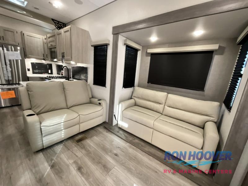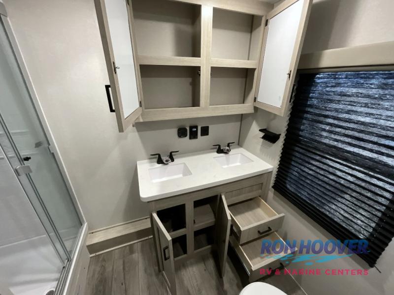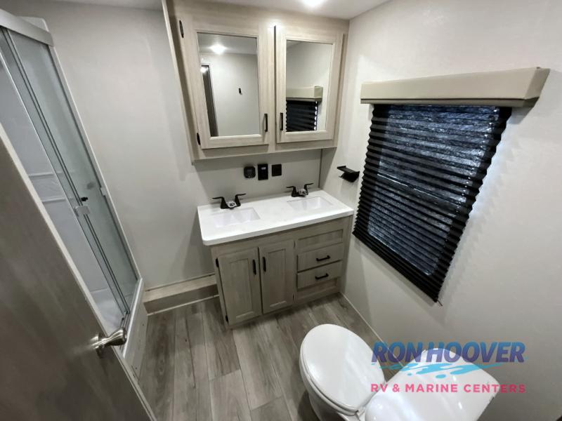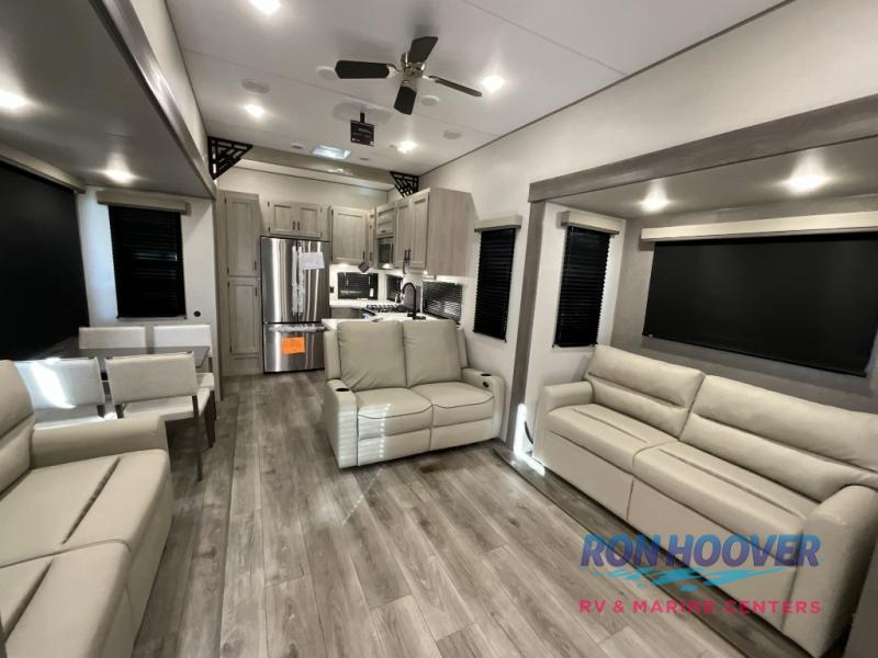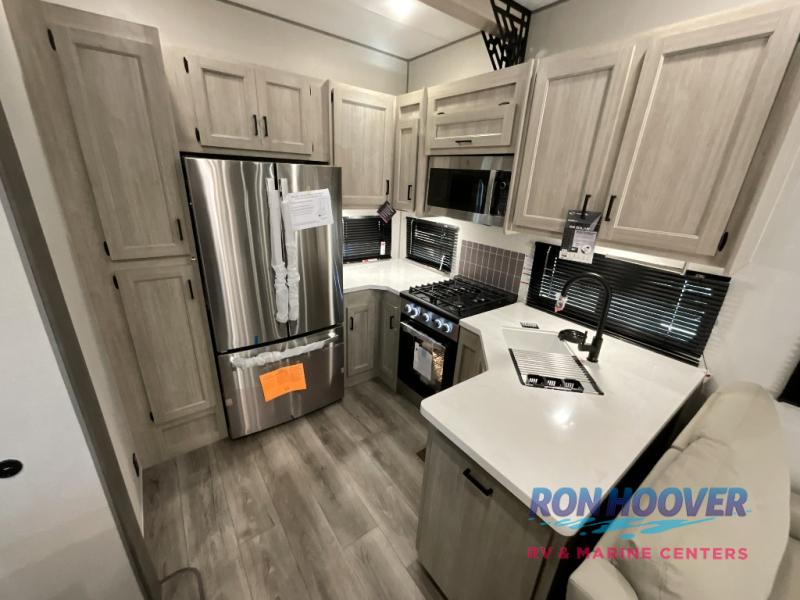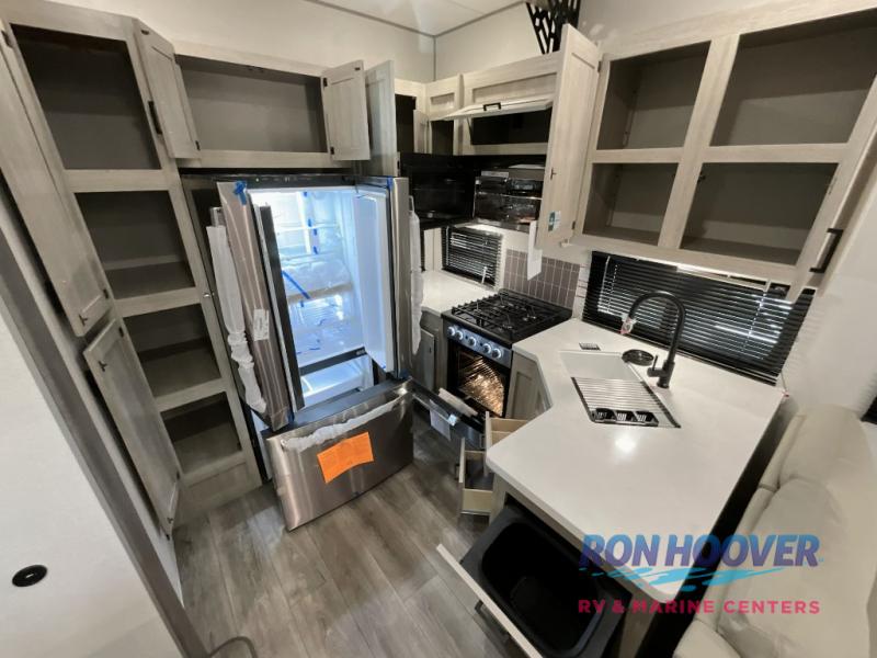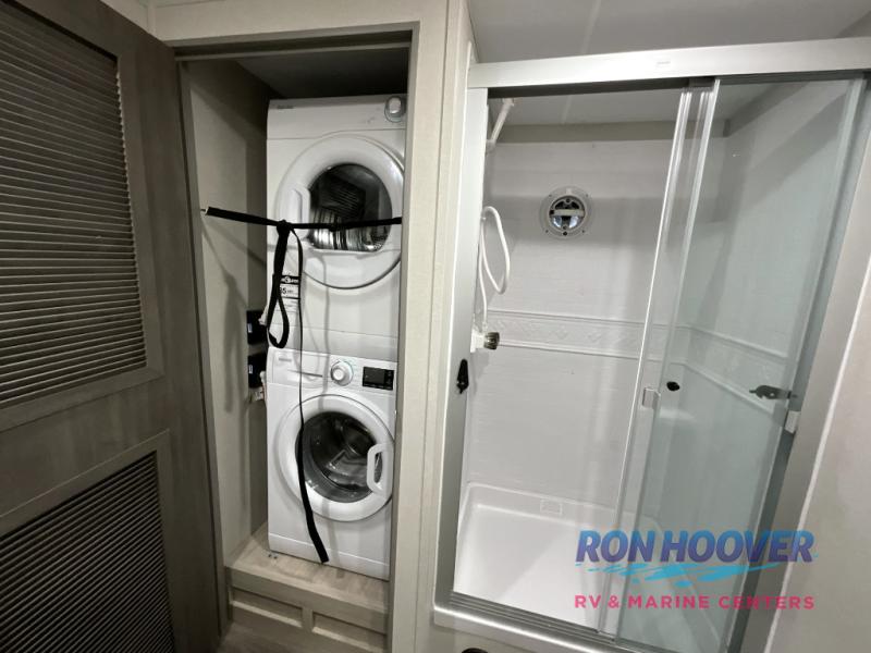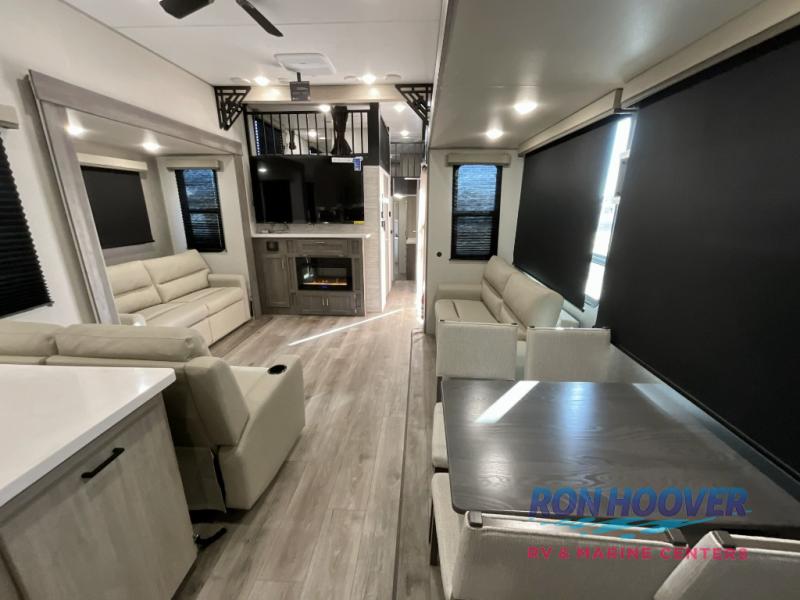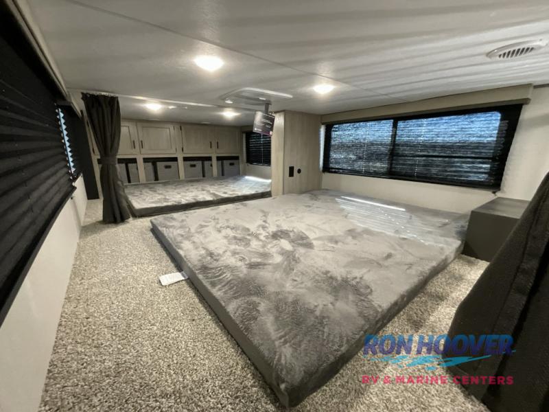 If you want to get out of the house without missing the comfort, you will love this destination trailer! Feel at home the moment you step in through the patio door and head to the open living area with double slide-outs making room for tons of seating areas to enjoy quality time by the fireplace with your guests. You will fall in love with the residential style kitchen featuring a 4 burner range, french door refrigerator, pantry, and much more to make your favorite recipes on the go. There is no such thing as too many guests when you have a loft that has two queen beds and a 28 x 64 bunk matt to rest. In the main floor you will have a master bedroom all to yourself that has its own private bath offering comfort and convenience at only a few steps away from your king bed.