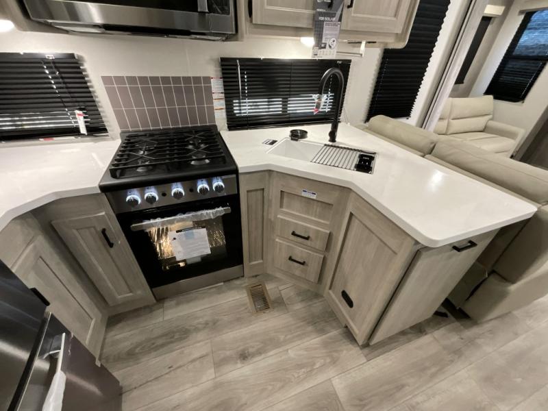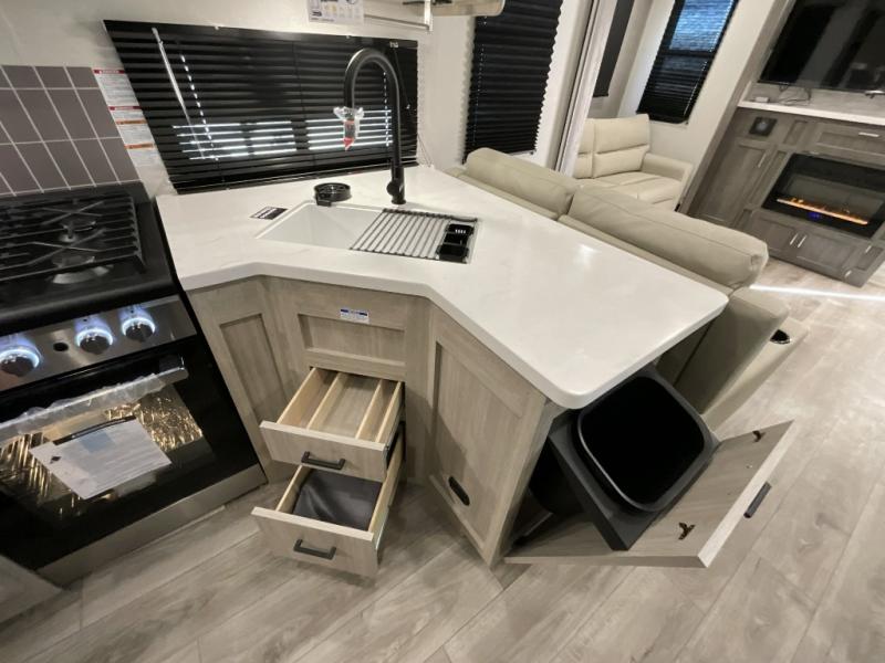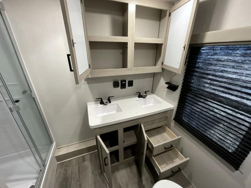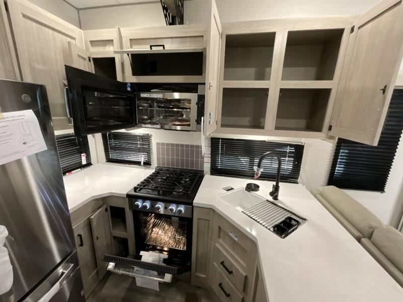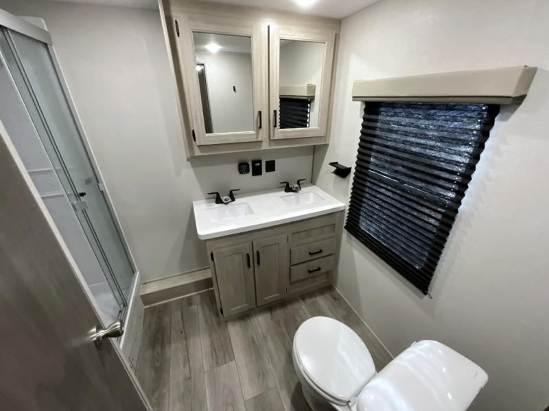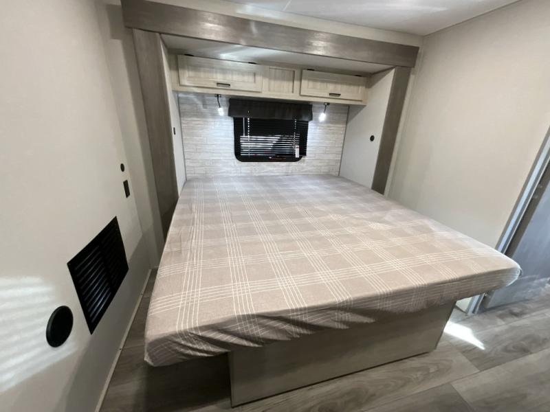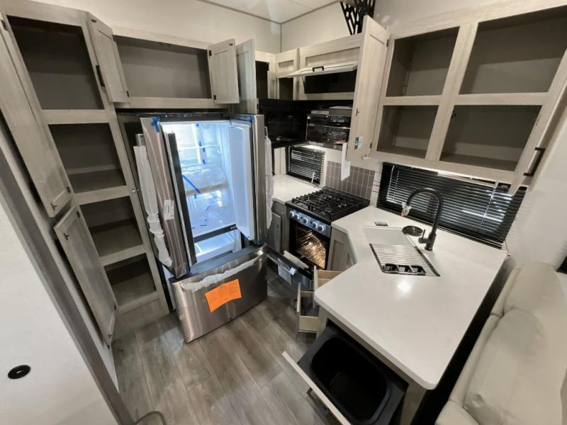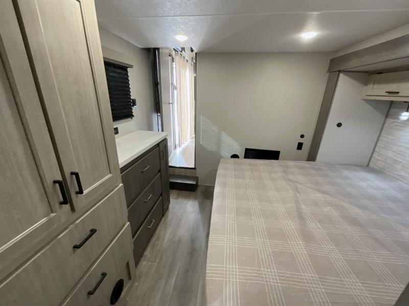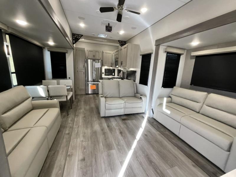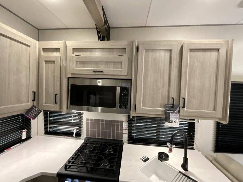 If you want to get out of the house without missing the comfort, you will love this destination trailer! Feel at home the moment you step in through the patio door and head to the open living area with double slide-outs making room for tons of seating areas to enjoy quality time by the fireplace with your guests. You will fall in love with the residential style kitchen featuring a 4 burner range, french door refrigerator, pantry, and much more to make your favorite recipes on the go. There is no such thing as too many guests when you have a loft that has two queen beds and a 28 x 64 bunk matt to rest. In the main floor you will have a master bedroom all to yourself that has its own private bath offering comfort and convenience at only a few steps away from your king bed.
