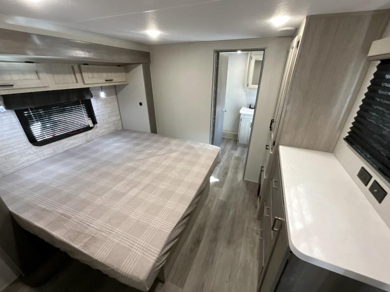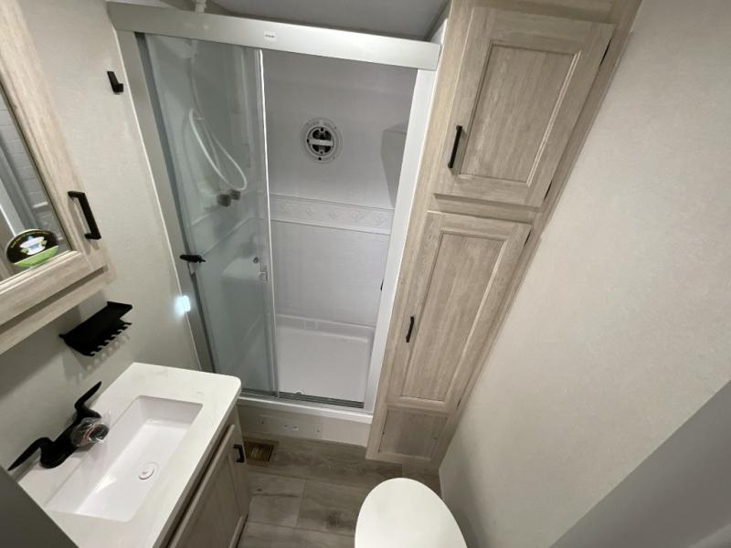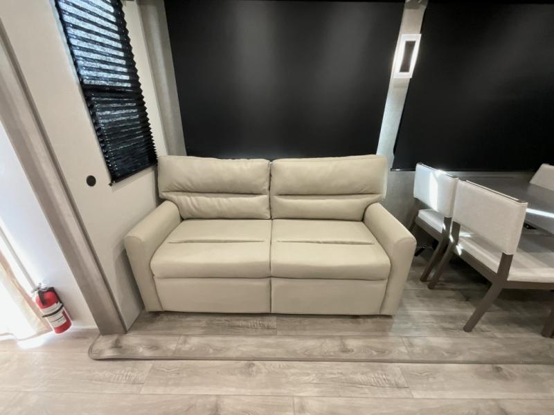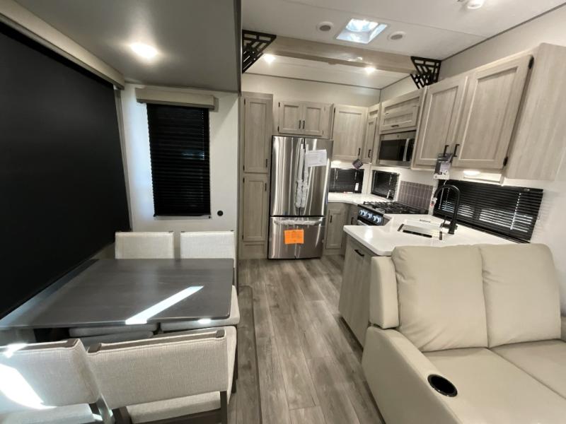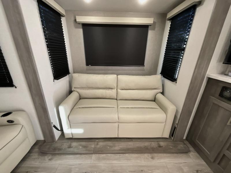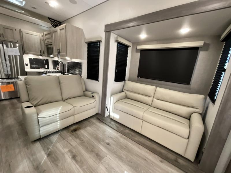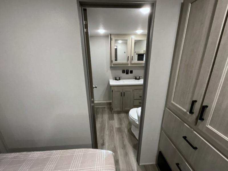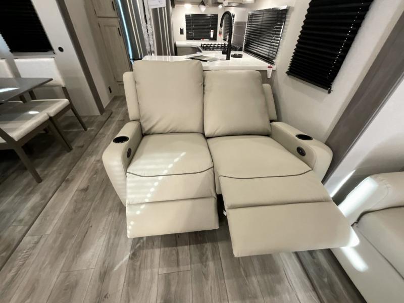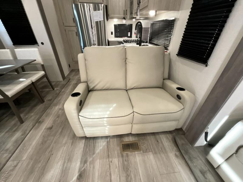 If you want to get out of the house without missing the comfort, you will love this destination trailer! Feel at home the moment you step in through the patio door and head to the open living area with double slide-outs making room for tons of seating areas to enjoy quality time by the fireplace with your guests. You will fall in love with the residential style kitchen featuring a 4 burner range, french door refrigerator, pantry, and much more to make your favorite recipes on the go. There is no such thing as too many guests when you have a loft that has two queen beds and a 28 x 64 bunk matt to rest. In the main floor you will have a master bedroom all to yourself that has its own private bath offering comfort and convenience at only a few steps away from your king bed.