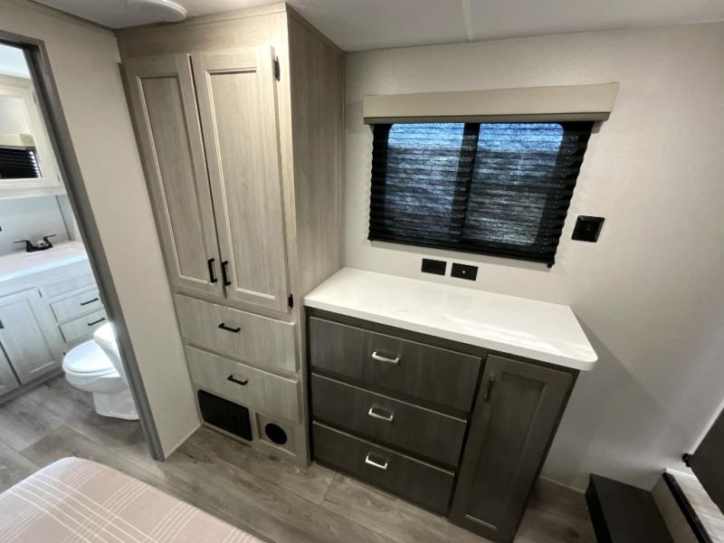 With any Catalina Destination trailer by Coachmen, you will enjoy comfortable extended stays wherever you decide to set up camp! The full length frame outriggers add strength to each unit, along with a seamless Alpha Roof membrane and Norco electromagnetic, powder coated chassis. You will love the open views provided by the residential-style sliding glass patio door, plus there are GE appliances, woodplank linoleum flooring, and hard valance window treatments to make your space feel more like home. Head outside to find a convenient "Leash Link" quick hookup D-ring for your furry friends, premium JBL exterior speakers, flush mount baggage doors for your gear, and the list of amenities goes on!