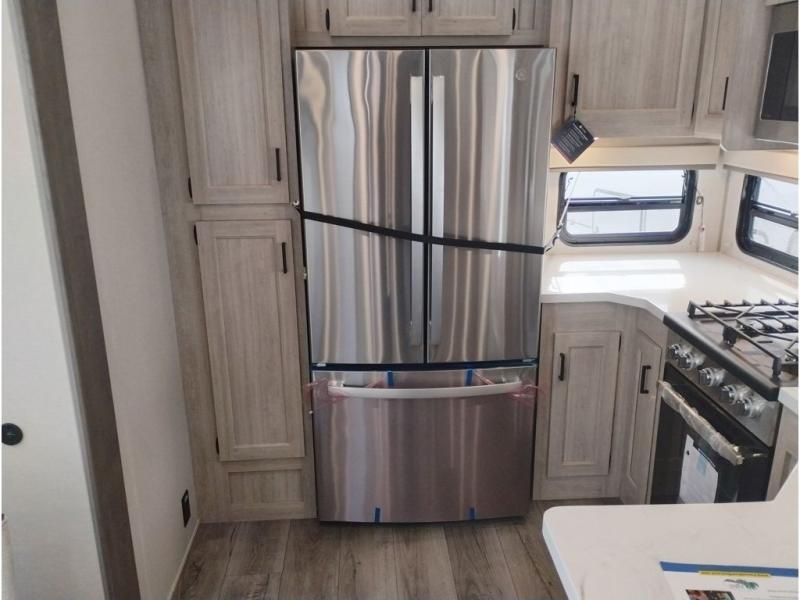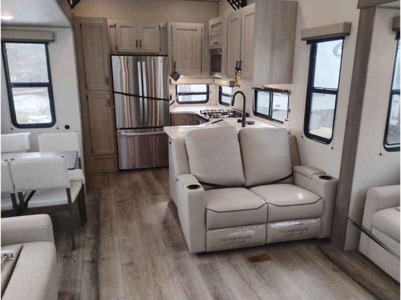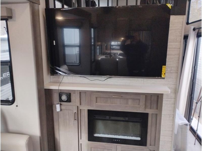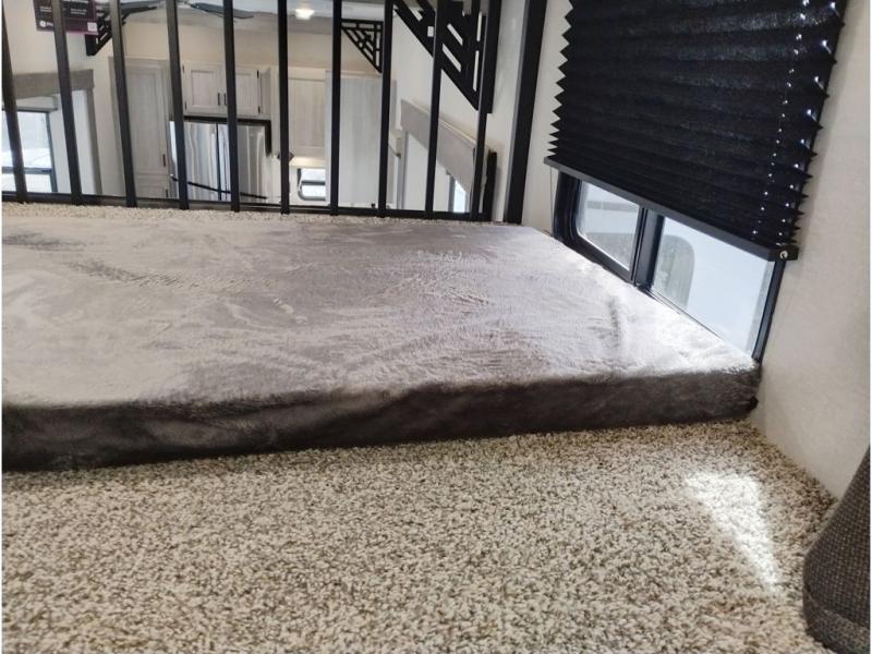 If you want to get out of the house without missing the comfort, you will love this destination trailer! Feel at home the moment you step in through the patio door and head to the open living area with double slide-outs making room for tons of seating areas to enjoy quality time by the fireplace with your guests. You will fall in love with the residential style kitchen featuring a 4 burner range, french door refrigerator, pantry, and much more to make your favorite recipes on the go. There is no such thing as too many guests when you have a loft that has two queen beds and a 28 x 64 bunk matt to rest. In the main floor you will have a master bedroom all to yourself that has its own private bath offering comfort and convenience at only a few steps away from your king bed.