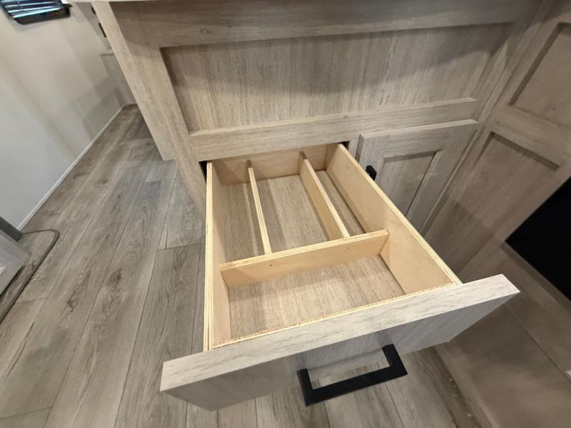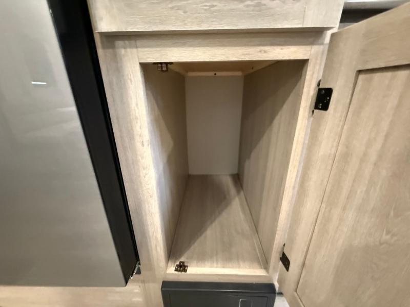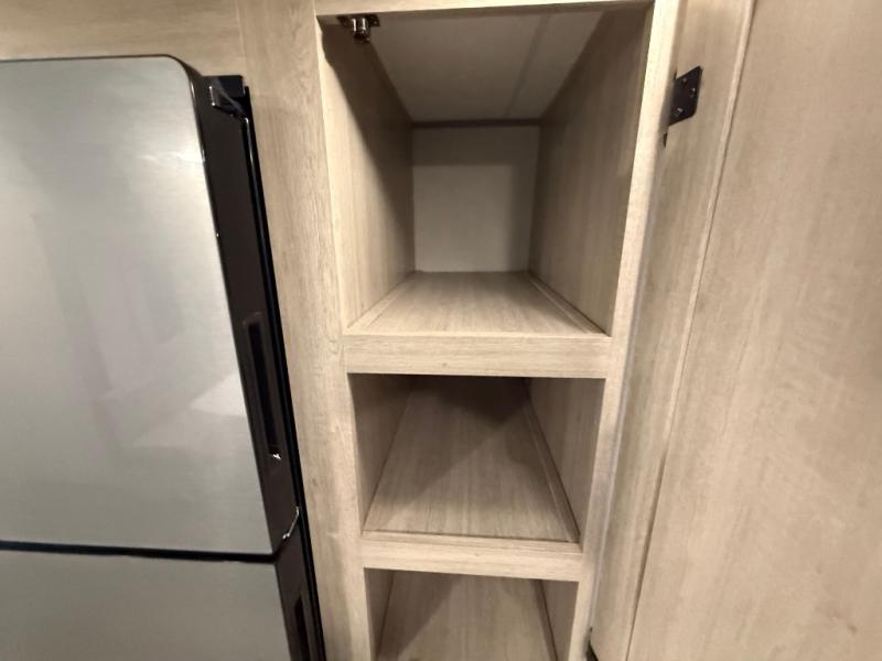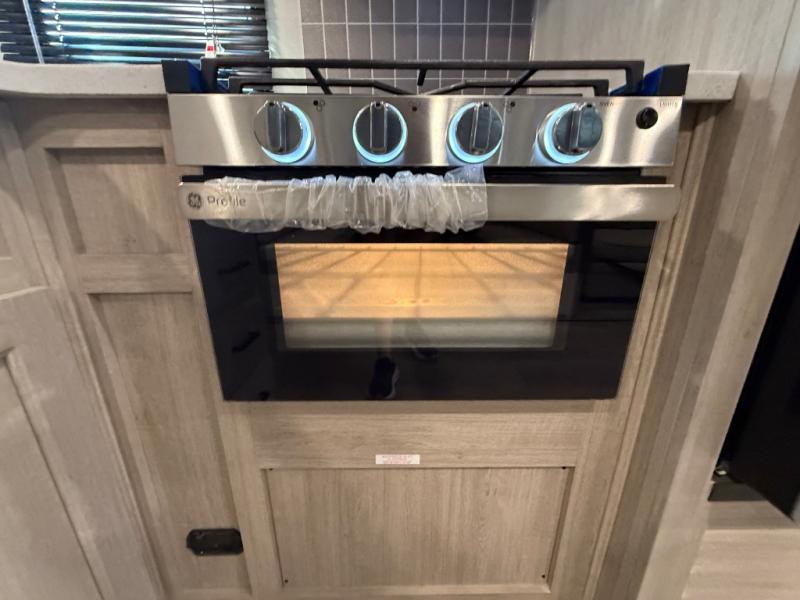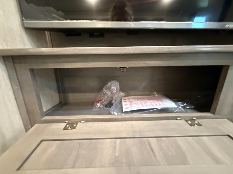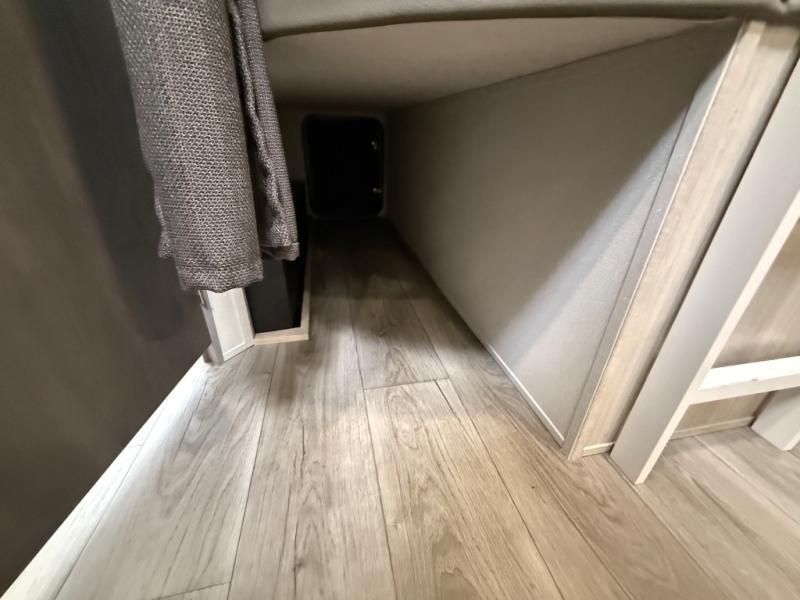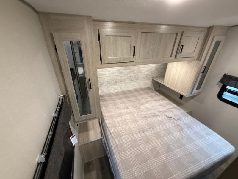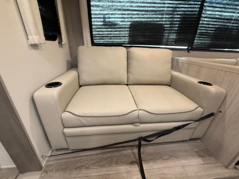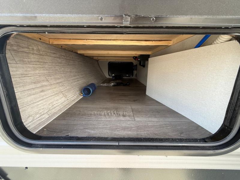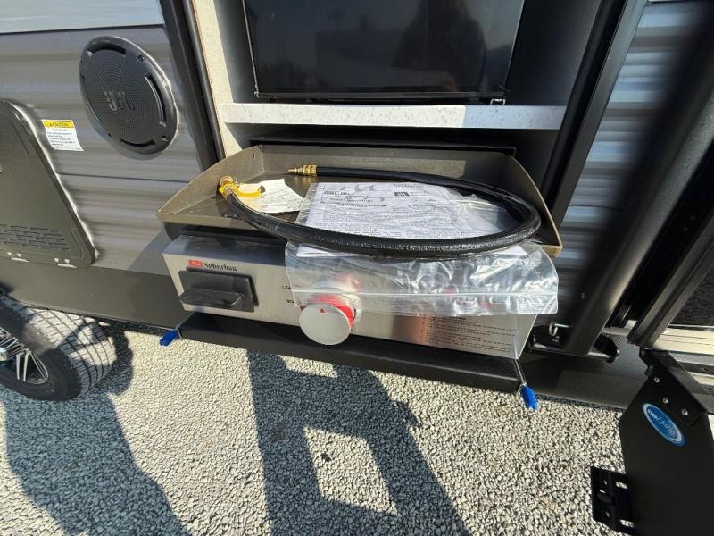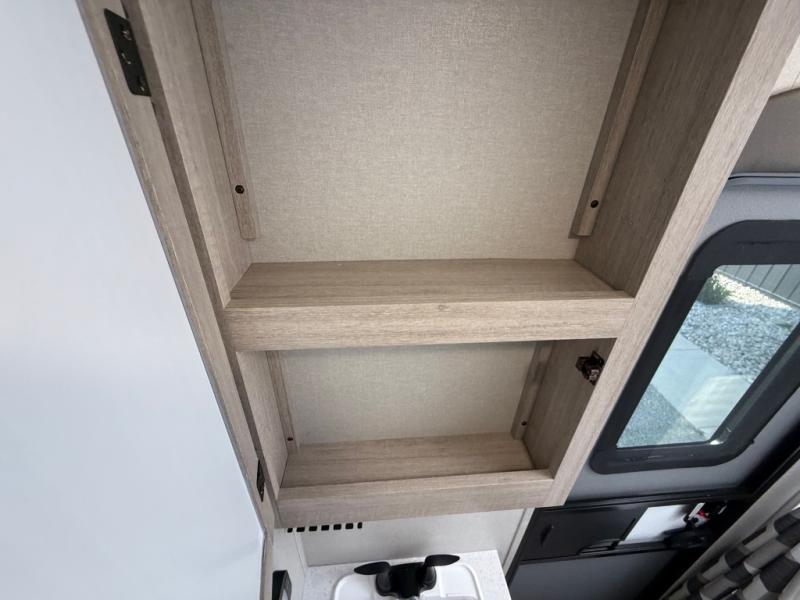 This travel trailer is perfect for your whole crew! Once you arrive at the campground, you can put out the 21' electric awning and start lunch on the exterior camper kitchen with a griddle and mini fridge. There is also a pass-thru storage plus additional exterior storage with a fold-down table and a TV hookup for added convenience. And since there are dual entry doors found on this unit, you can enter in through the full bath in the back, or the main living area towards the front! A large slide provides ample space to move about, and you'll find a trundle sofa and U-shaped dinette here for cozy seating and sleeping space. Speaking of sleeping, there is a front RV queen bed in the bedroom plus double-size bunks in the back for guests!