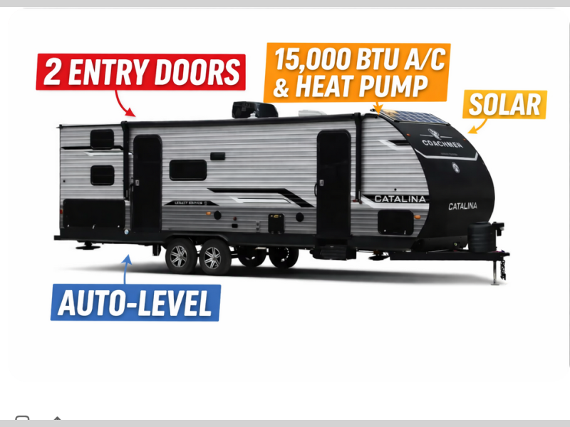 If you’re searching for a new bunkhouse travel trailer with auto leveling, dual A/C capability, and solar, this 2026 Coachmen Catalina 273DBHCKLE is a standout option. Designed for families and extended camping, this Catalina is available now at Recreation USA in Myrtle Beach, South Carolina.
