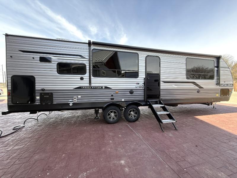 Each Catalina Legacy travel trailer by Coachmen is constructed with a cambered structural steel I-beam frame for added strength and support, plus an enclosed and fully sealed corrugated underbelly to extend your camping season. There is also a seamless Alpha roof membrane, R-7 insulation throughout, full length frame outriggers, plus many more durable construction materials. You will love the 6' 9" interior height, along with Congoleum woodplank linoleum flooring, solid surface kitchen countertops, and hard valance window treatments. Choose a Catalina Legacy today!