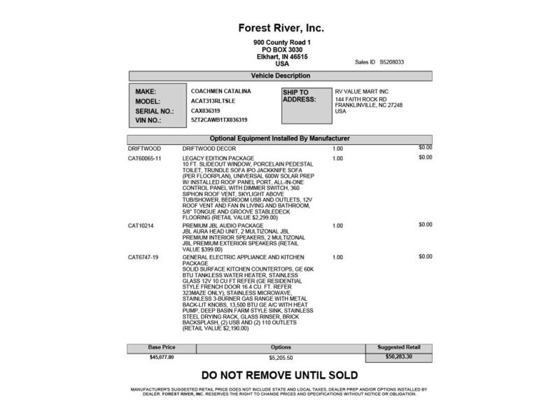 Coachmen Catalina Legacy travel trailer 313RLTS highlights: