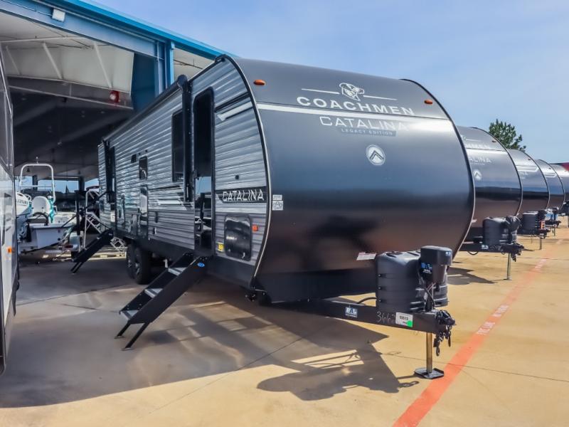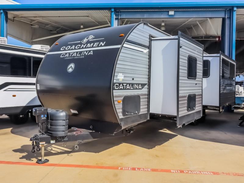 Each Catalina Legacy travel trailer by Coachmen is constructed with a cambered structural steel I-beam frame for added strength and support, plus an enclosed and fully sealed corrugated underbelly to extend your camping season. There is also a seamless Alpha roof membrane, R-7 insulation throughout, full length frame outriggers, plus many more durable construction materials. You will love the 6' 9" interior height, along with Congoleum woodplank linoleum flooring, solid surface kitchen countertops, and hard valance window treatments. Choose a Catalina Legacy today!