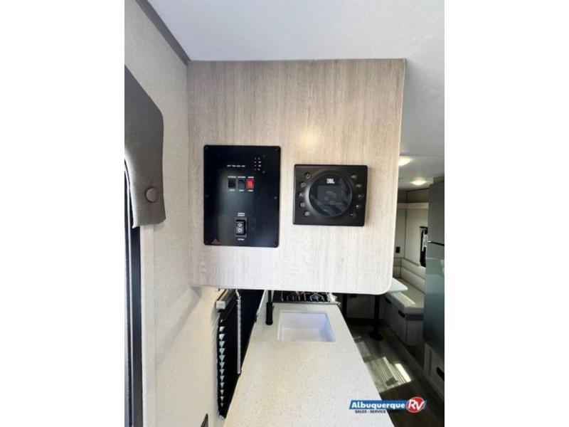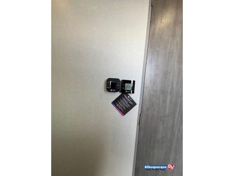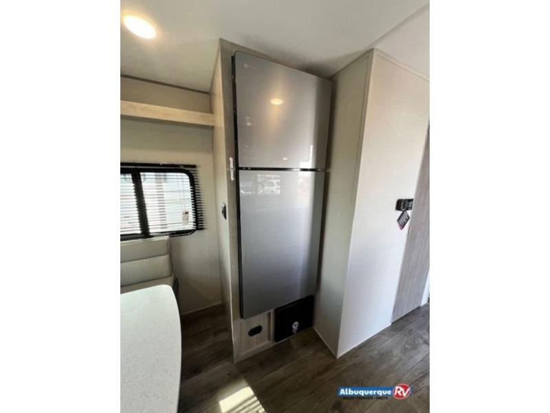 The perfect unit for a cozy weekend retreat for two or three! There is a queen bed up front with overhead storage and more at the foot of the bed to keep your things tidy. The rear of the unit offers a U-shaped dinette that is great for watching TV or playing cards and games, plus it has an end table and a handy overhead shelf. A mid-coach bath includes a 36" x 30" shower and toilet with foot flush, and a mirror. This model also includes a GE two burner cooktop, a GE stainless microwave oven, plus a 3.3 cu. ft. 12V refrigerator to keep food fresh!