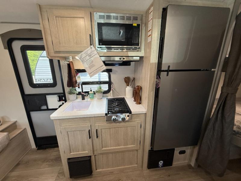 With any Catalina Summit Series 7' by Coachmen RV, you can create an easier adventure with the versatility and simplicity of the shorter lengths and lighter weights! Each includes a premium exterior graphics package, a smooth HD aluminum radius front, and EZ lube axles with leaf spring suspension. The exterior offers a heavy duty standard tongue jack, a diamond plate rock guard to protect against road debris, exterior RG-6 coax cabling and satellite prep, rear view camera prep, and flush mount baggage doors with radius corners for your outdoor gear. Inside, you will enjoy a premium JBL interior speaker, USB charging ports, seamless Thermofoil countertops throughout, a deep basin farm style sink for easy cleanup, and GE kitchen appliances. It's time to choose an affordable and maneuverable single axle trailer today!