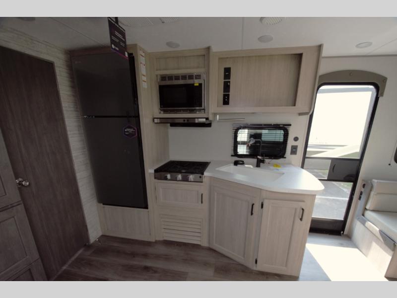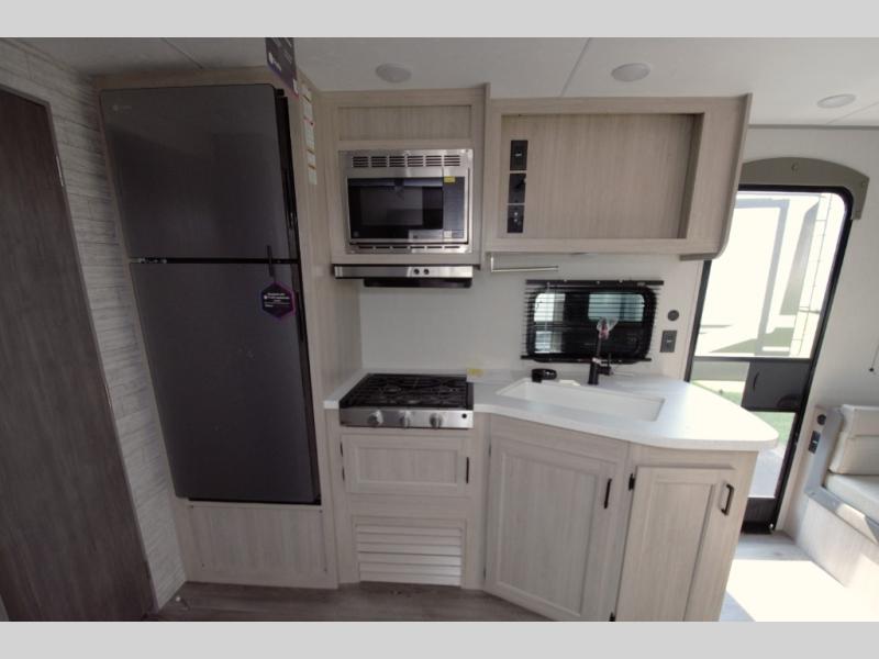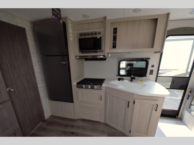 The Catalina Summit Series 8 231MKS offers a smart floorplan with a spacious walk through bath connecting the private front bedroom to the living area. This setup adds convenience and privacy whether you are relaxing or hosting overnight guests.