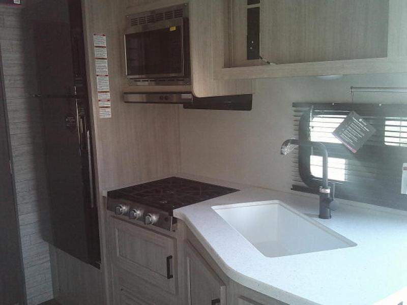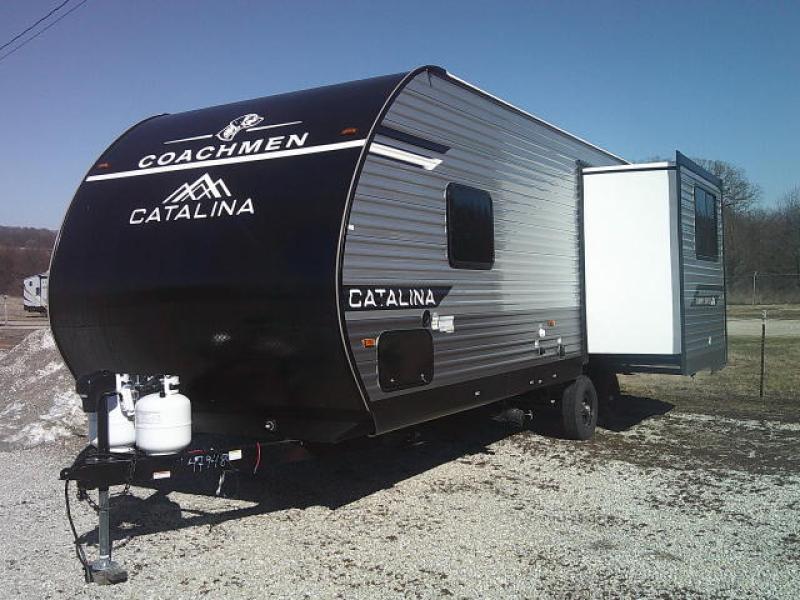 With any Catalina Summit Series 8 by Coachmen you will enjoy an affordable travel trailer packed with at-home comforts! The solid construction includes a Norco electromagnetic powder coated chassis, a seamless Alpha roof membrane, and full length frame outriggers for maximum support and durability. EZ lube axles with leaf spring suspension and self adjusting brakes provide smooth towing from home to campground, and the premium exterior graphics package is sure to turn heads as you travel down the highway. You will love the features included, such as a JBL Aura Cube media center, magnetic baggage door latches, 4,000 lumen interior touch lighting, and the list goes on!