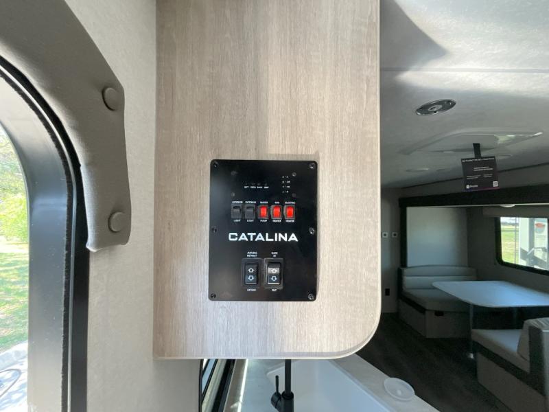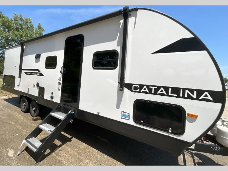 With any Catalina Summit Series 8 by Coachmen you will enjoy an affordable travel trailer packed with at-home comforts! The solid construction includes a Norco electromagnetic powder coated chassis, a seamless Alpha roof membrane, and full length frame outriggers for maximum support and durability. EZ lube axles with leaf spring suspension and self-adjusting brakes provide smooth towing from home to campground, and the premium exterior graphics package is sure to turn heads as you travel down the highway. You will love the features included, such as a JBL Aura Cube media center, magnetic baggage door latches, 4,000 lumen interior touch lighting, and the list goes on!
