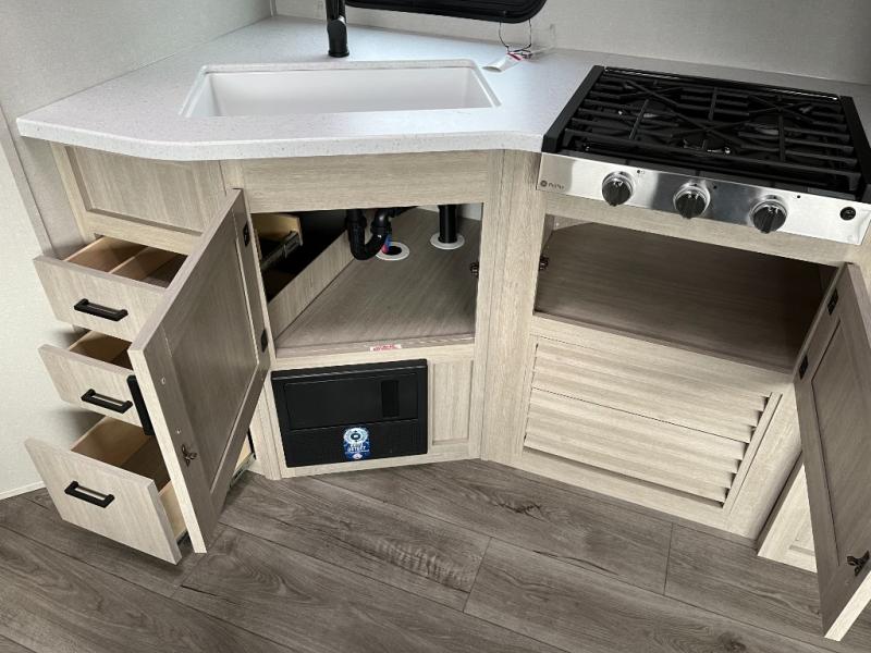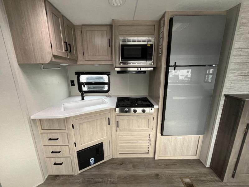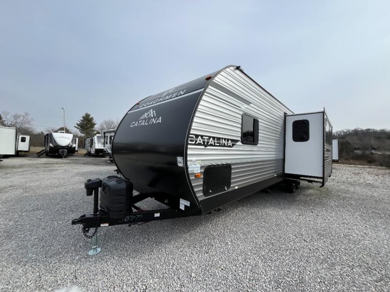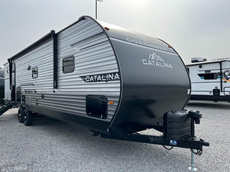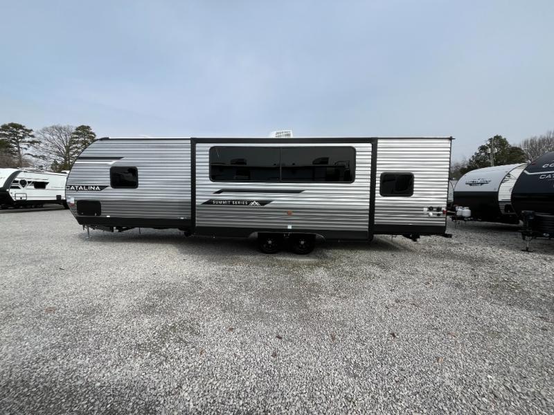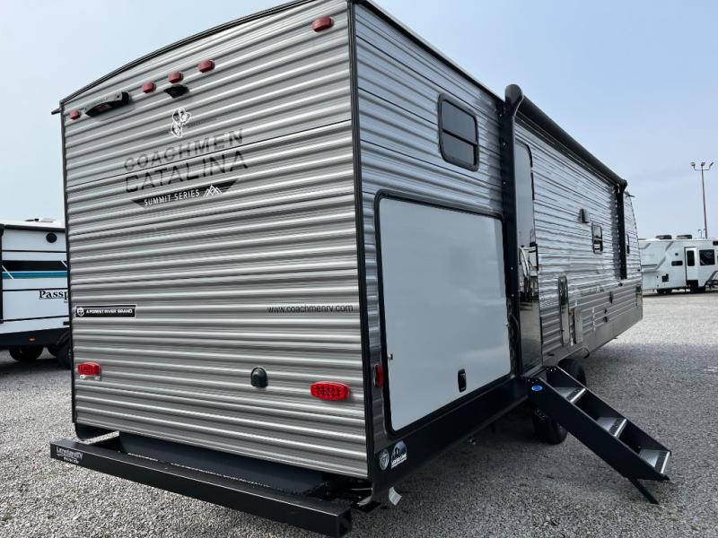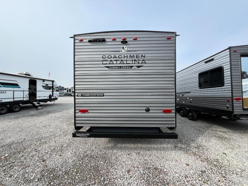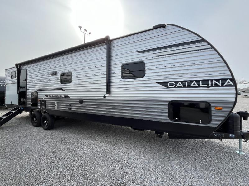With any Catalina Summit Series 8 by Coachmen you will enjoy an affordable travel trailer packed with at-home comforts! The solid construction includes a Norco electromagnetic powder coated chassis, a seamless Alpha roof membrane, and full length frame outriggers for maximum support and durability. EZ lube axles with leaf spring suspension and self adjusting brakes provide smooth towing from home to campground, and the premium exterior graphics package is sure to turn heads as you travel down the highway. You will love the features included, such as a JBL Aura Cube media center, magnetic baggage door latches, 4,000 lumen interior touch lighting, and the list goes on!