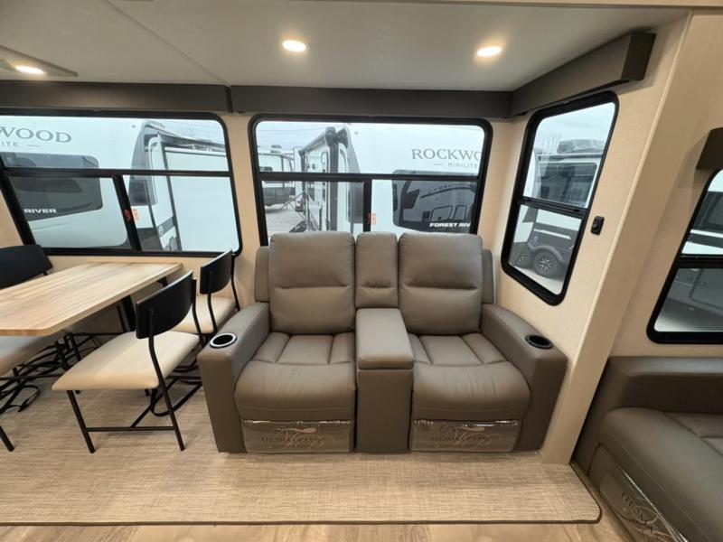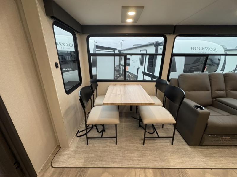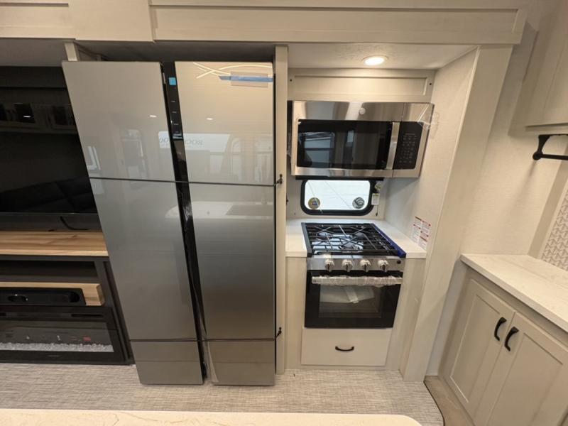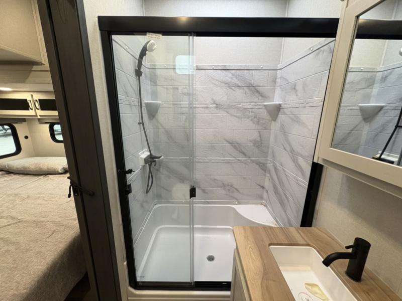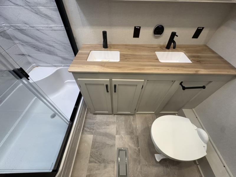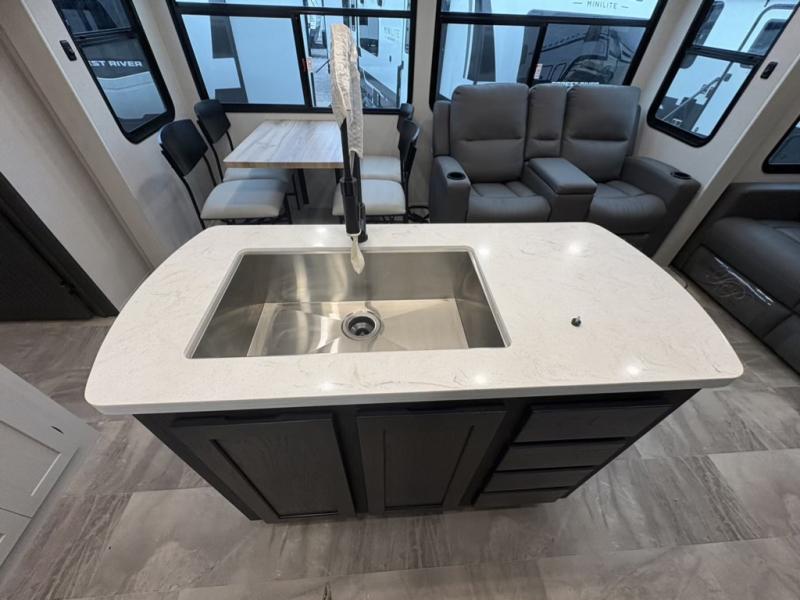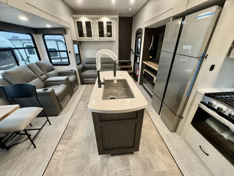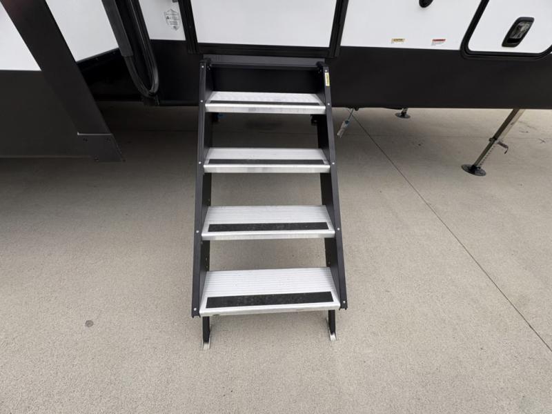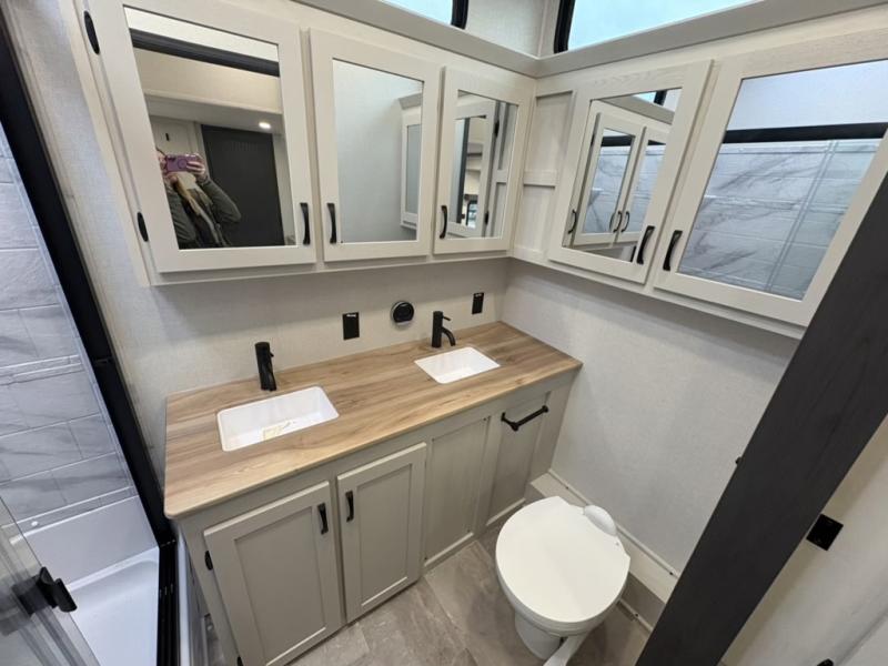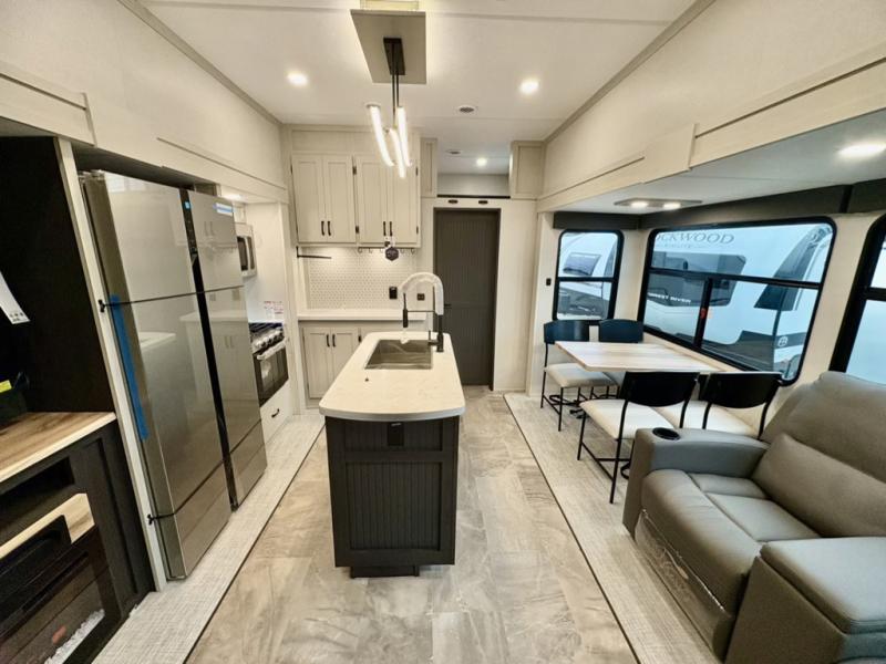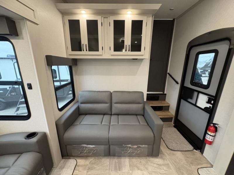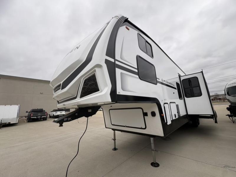 The Tri-Tex™ powder coated frame technology is up to 5X more weather resistant, and the Equa-Flex® suspension with 1/2" thick anodized shackles, bronze bushings, and greasable Zerk® fittings will make towing easier than ever. There is also a Solar Source +™ package with an upgraded 200W roof-mounted solar panel, along with an upgraded lithium-ready converter and 30AMP charge controller by Rich Solar® to support off-grid capability. To top it off, the 6X™ Double Azdel® aluminum cage sidewall system helps deliver a strong, vacuum-bonded build, while the upgraded Carbon & Walnut entertainment center with JBL® soundbar adds a premium touch. Now that's what I call luxury! Choose a Chaparral fifth wheel today!