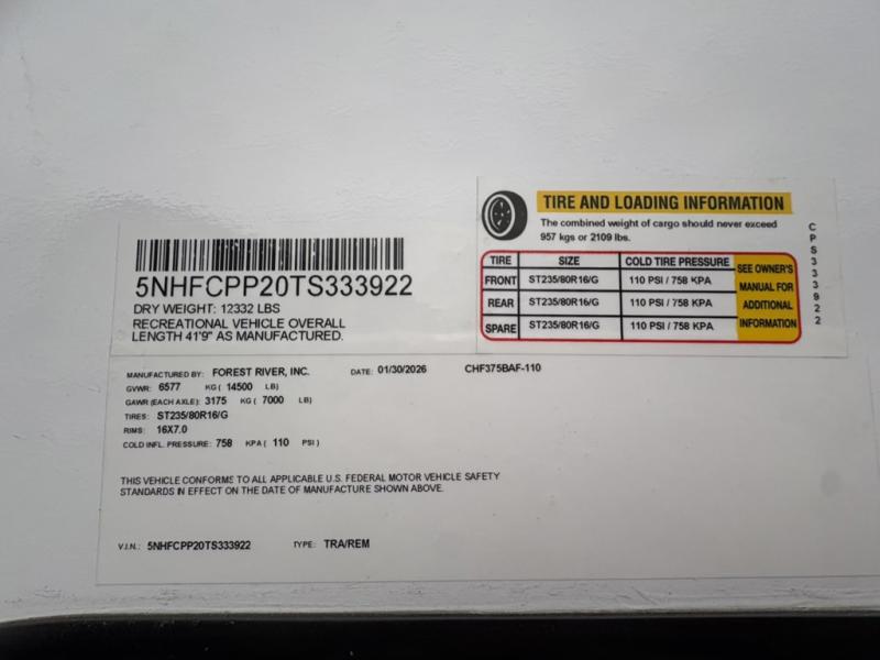 New 2026 Coachmen RV Chaparral 375BAF Fifth Wheel