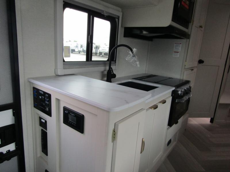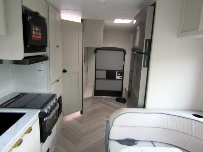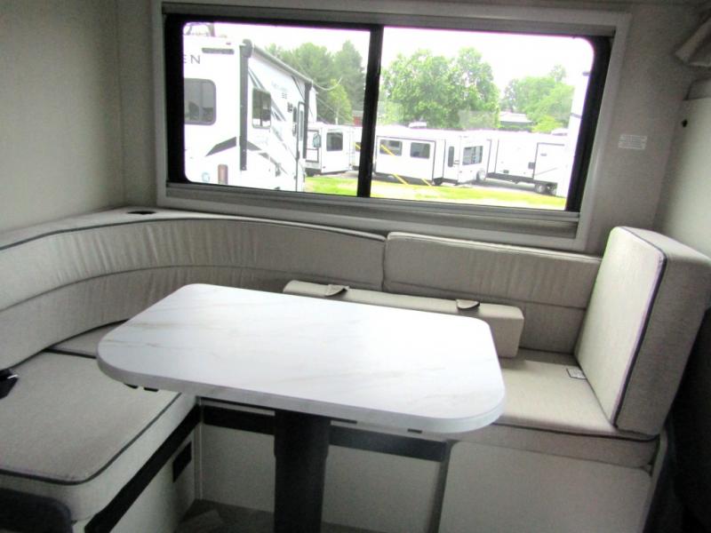 Starting traveling in comfort with this motorhome! It features a rear corner queen bed to lay your head on at night and is conveniently next to the rear corner bathroom which will come in handy at night. There is also a 39" x 95" bunk over cab for sleeping or storage. You could even transform the 44" x 76" J-lounge into an extra sleeping space when you aren't using it to enjoy a meal or play a card game. Speaking of meals, you can easily cook your meals with the three burner cooktop and store any leftovers in the refrigerator. Wind down your nights by watching a movie with the swing-arm TV or set up a chair underneath the 15' power awning!