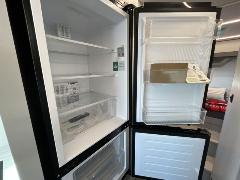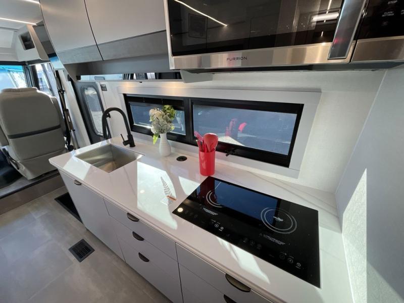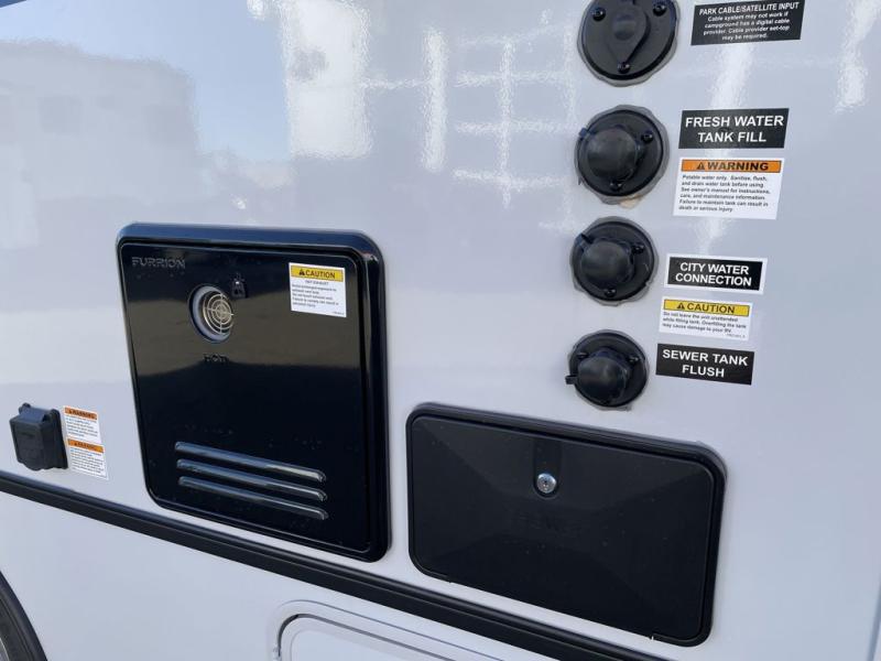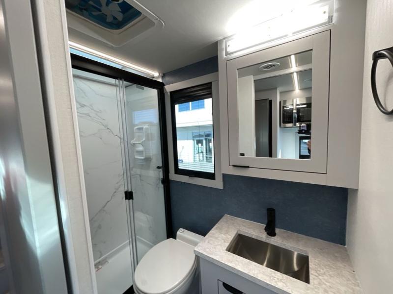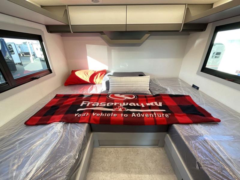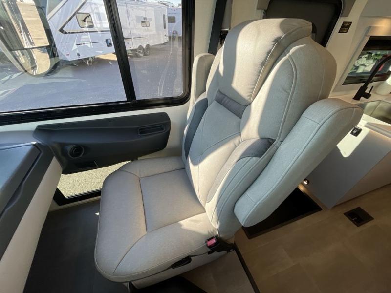 You will find lots of versatility in this coach! There are rear twin beds that can convert into a 95" x 74" bed with an optional 32" TV for movies in bed, a sofa with a sleeper option or you can switch it out for the optional recliners/dinette. The chef can prepare their best home cooked meals with the induction cooktop and stainless steel double door refrigerator to keep your perishables fresh. The full bathroom has a 24" x 36" shower with a skylight above for added natural lighting. There are plenty of overhead cabinets throughout for your items to stay out of the way, plus a 32" TV above the entrance door. You even have an exterior 95" x 38" x 37" mega pass-through storage area for your outdoor gear!
