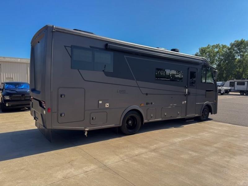Enjoy the compact and stylish look of a European coach with the Euro Class A gas motorhome by Coachmen RV! There is a crowned, laminated fiberglass roof, a fiberglass front cap, plus a Ford F53 7.3L V8 chassis that will add to the life of your RV. The driver will love having a back up monitor with side view cameras, and the passenger can use the computer workstation to work remotely if needed. There is also traction control, cruise control, plus a tilt and telescoping steering wheel that will make the drive that much easier. An exterior propane hook-up also comes standard, along with radius trunk doors for your gear, and automatic leveling jacks to be set up in no-time. Head inside to find modern features, like the stainless steel appliances, square windows with day/night shades, and the list goes on!