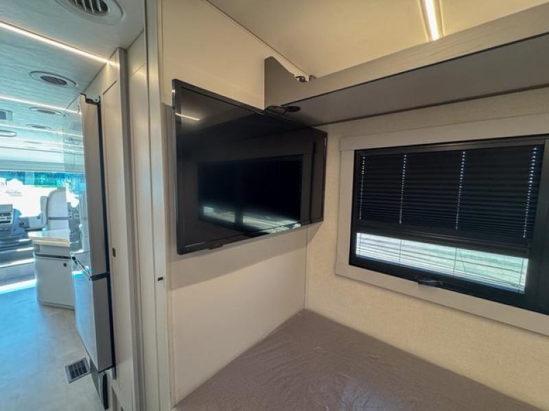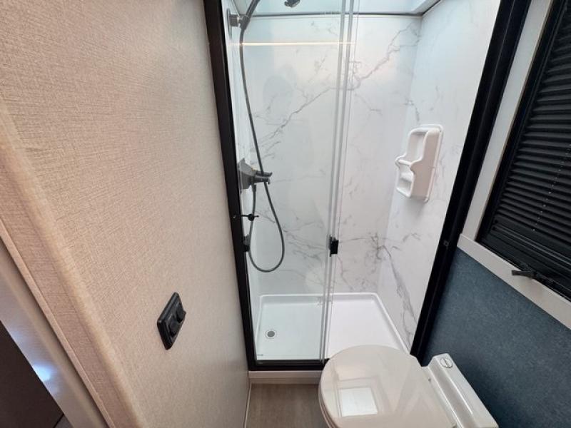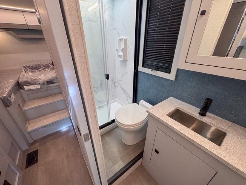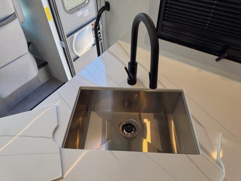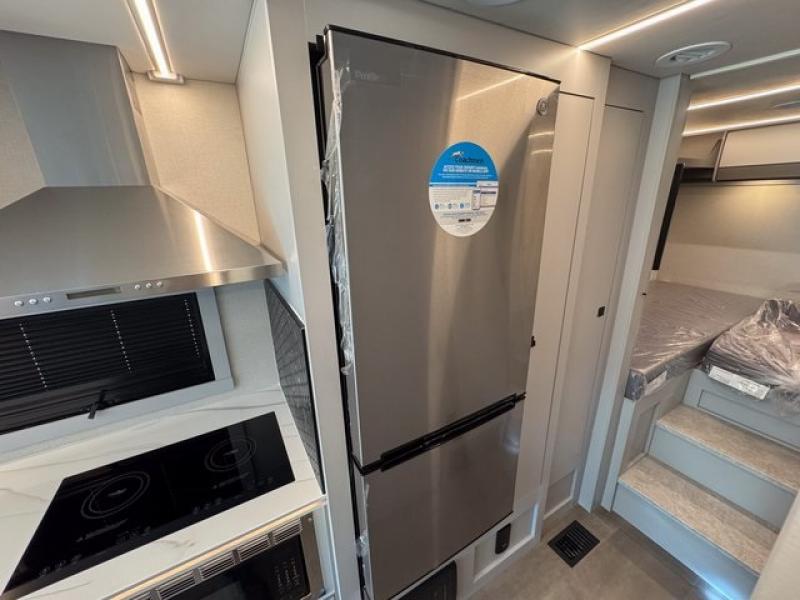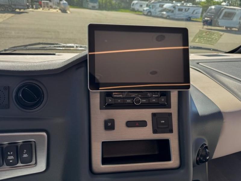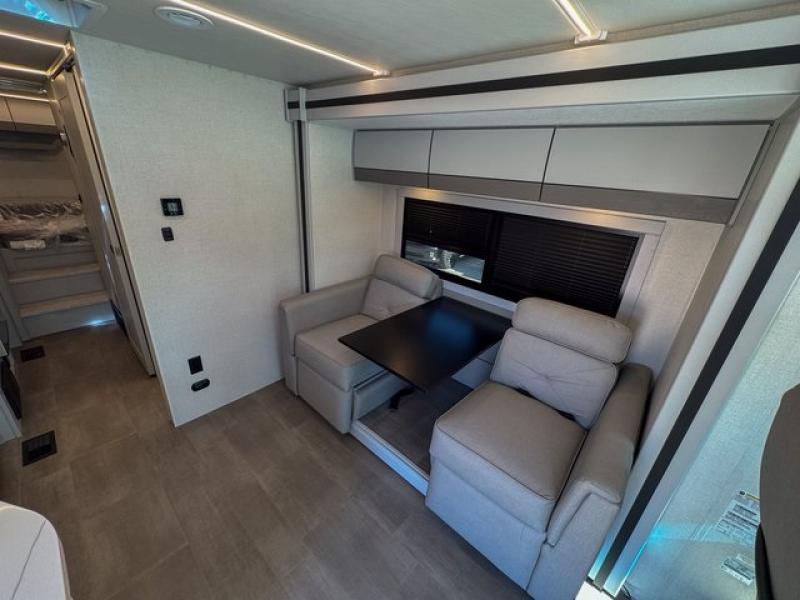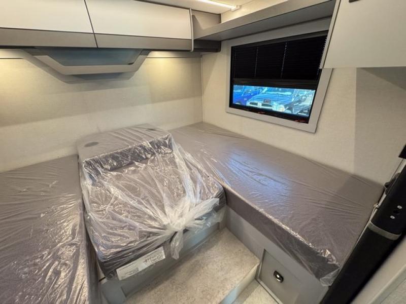 You're sure to have a great time in this sleek motorhome for two! Once you arrive at your destination, the reclining/swivel captain's seats can become a part of the living room where you'll also find a slide out with recliners/dinette. And if you're needing more sleeping space, just choose the optional sofa with a sleeper in place of the dinette! You can then make lunch on the induction cooktop and grab a cold drink from the stainless steel double door refrigerator. The full bath includes a glass shower door, an on-demand water heater, and a shower skylight to let natural light in. Head to the rear bedroom where you can get a great night's rest on the two twin beds with a nightstand in between to set your phone and book on. There is also a 32" bedroom TV so you can watch movies in bed!