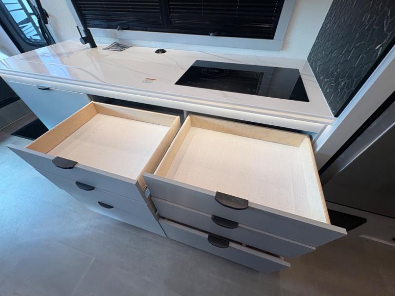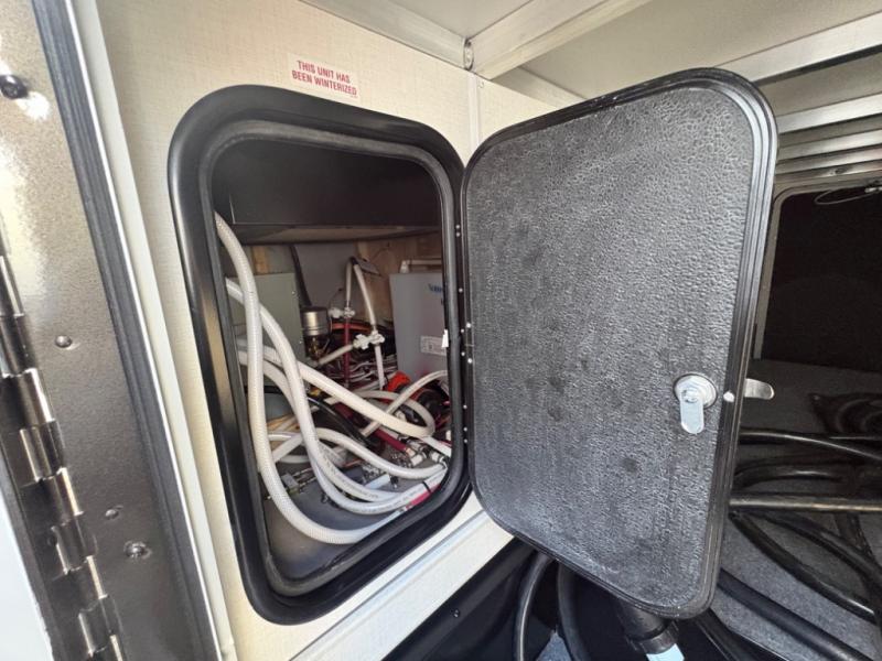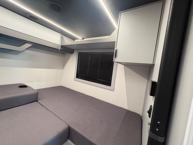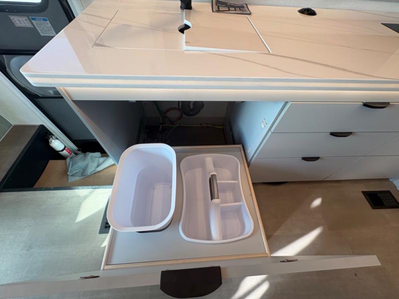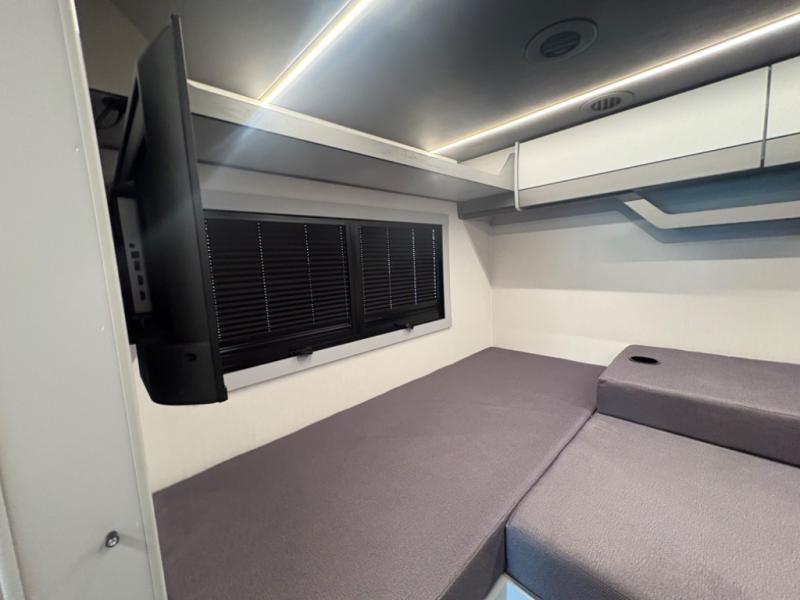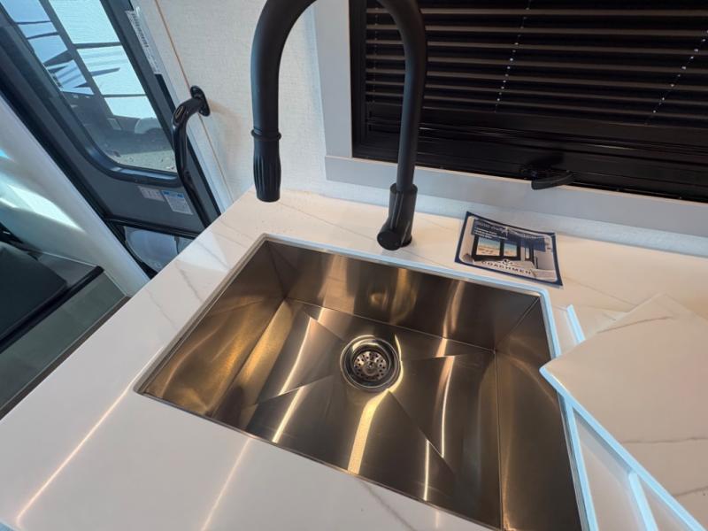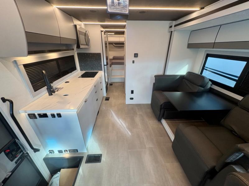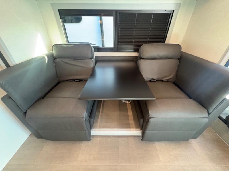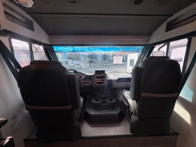 You're sure to have a great time in this sleek motorhome for two! Once you arrive at your destination, the reclining/swivel captain's seats can become a part of the living room where you'll also find a slide out with recliners/dinette. And if you're needing more sleeping space, just choose the optional sofa with a sleeper in place of the dinette! You can then make lunch on the induction cooktop and grab a cold drink from the stainless steel double door refrigerator. The full bath includes a glass shower door, an on-demand water heater, and a shower skylight to let natural light in. Head to the rear bedroom where you can get a great night's rest on the two twin beds with a nightstand in between to set your phone and book on. There is also a 32" bedroom TV so you can watch movies in bed!