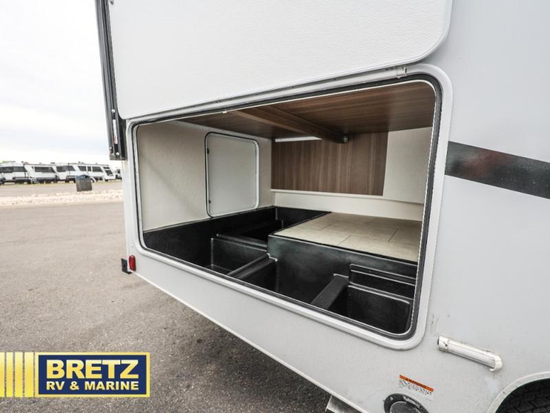 With any Freelander SS Class C gas motorhome by Coachmen, you will find a quality constructed coach for all your journeys. There is AlphaPly TPO seamless one-piece roof material and a max-length power awning with an LED light strip so you can enjoy evenings outdoors. You will also find a molded fiberglass front cap, a rotocast rear warehouse storage compartment, and an upgraded exterior safety grab handle. The mandatory SS Package includes a tankless water heater, running boards, and a towing hitch for your hauling needs. Head inside to enjoy the premium one-piece Thermofoil countertops and vinyl flooring, brushed nickle hardware, pleated night shades, and many more comforts.