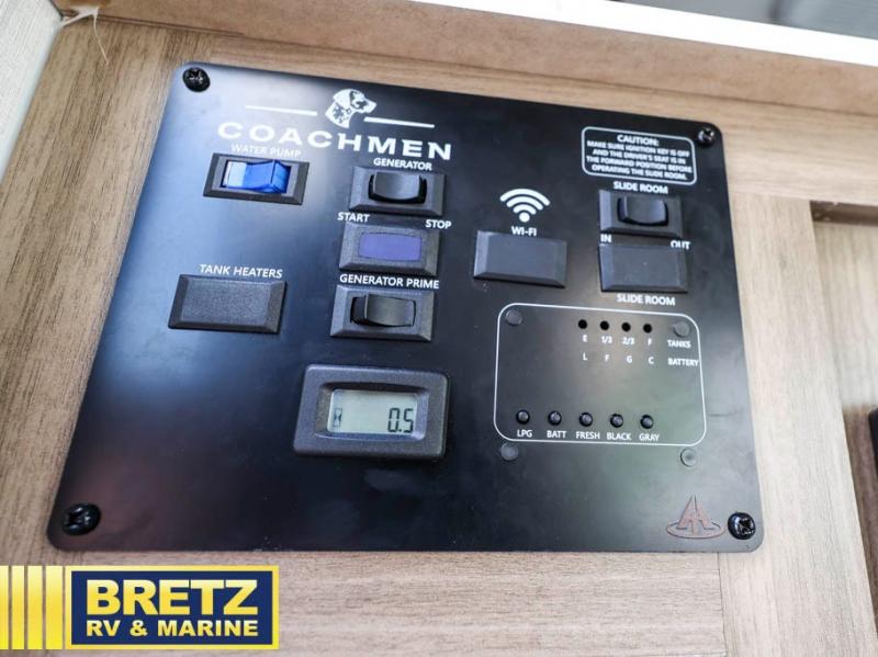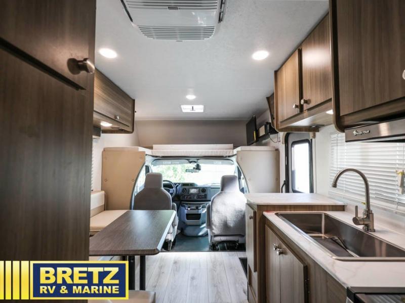 With any Freelander SS Class C gas motorhome by Coachmen, you will find a quality constructed coach for all your journeys. There is AlphaPly TPO seamless one-piece roof material and a max-length power awning with an LED light strip so you can enjoy evenings outdoors. You will also find a molded fiberglass front cap, a rotocast rear warehouse storage compartment, and an upgraded exterior safety grab handle. The mandatory SS Package includes a tankless water heater, running boards, and a towing hitch for your hauling needs. Head inside to enjoy the premium one-piece Thermofoil countertops and vinyl flooring, brushed nickle hardware, pleated night shades, and many more comforts.