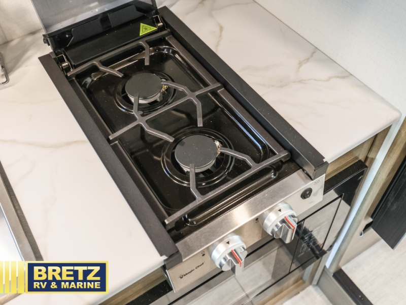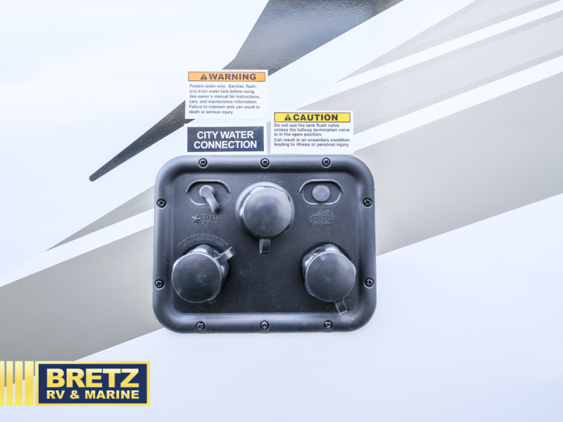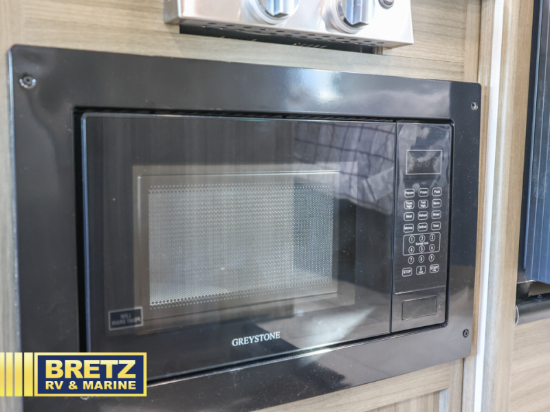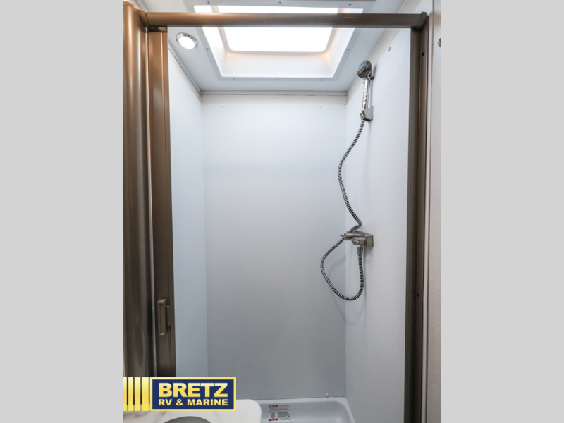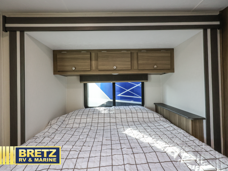 You will be met with comfort at every turn in this coach for six! Once you have stopped for the day, you can make lunch on the three burner cooktop and grab a cold drink from the 10 cu. ft. 12V refrigerator. There is a J-lounge with a pedestal table and extension where you can dine together, and the swing-arm TV in the cab will let you check the weather before heading outdoors. The rear corner full bath will let everyone freshen up when you return from hiking, and you'll enjoy a queen bed slide out to sleep on each night, while your guest take the J-lounge and cab-over bunk!