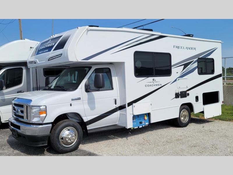 The Freelander Class C gas motorhome by Coachmen is a wonderful choice for anyone looking to get out on the road. A wide variety of floorplans and features offers something for everyone. The Azdel composite sidewalls and seamless one-piece roof membrane provide a solid structure to enjoy all your trips. Conveniences like storage above entrance door with an HDMI and charge station and reclining cockpit seats are standard, along with a rear color backup camera, a premium showerhead and faucet, and one-piece thermofoil countertops. The mandatory Explorer Package includes an exterior shower to rinse off before entering inside and an on-demand tankless water heater for hot water fast. Come find your favorite one today!