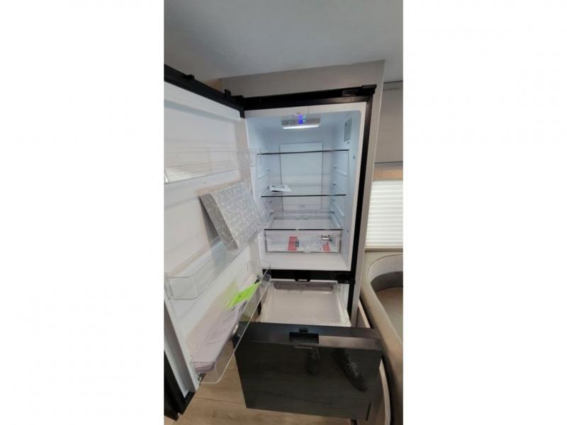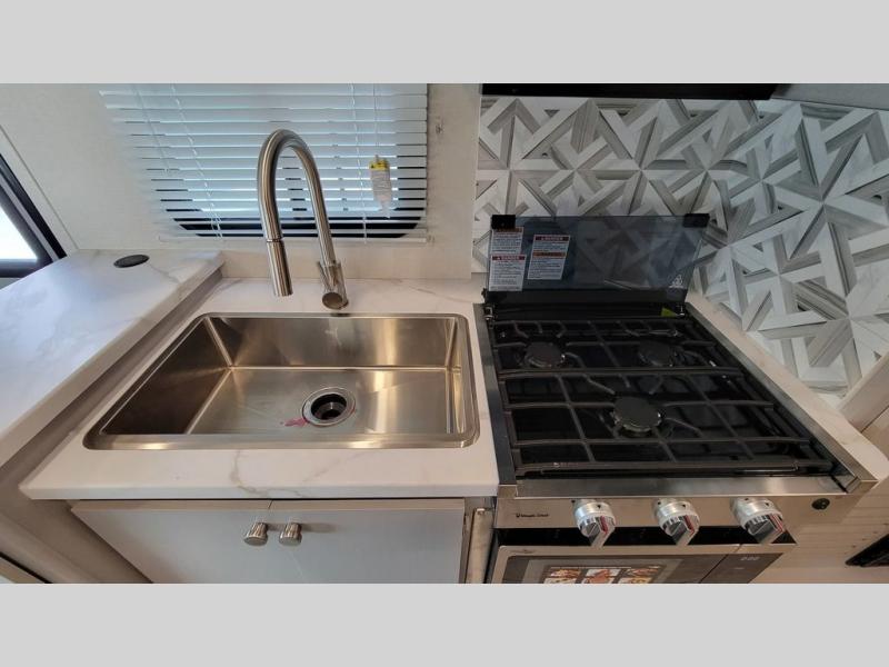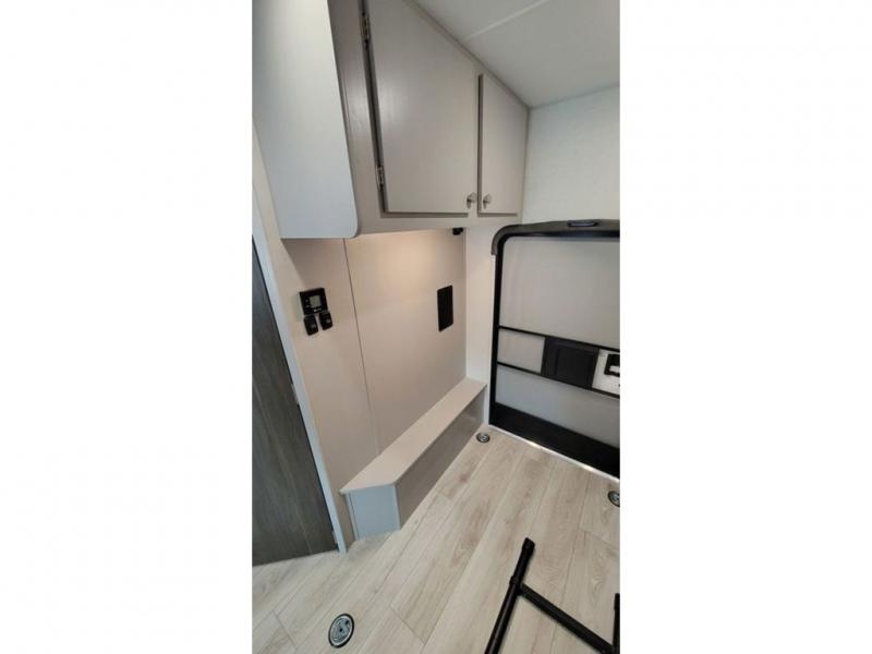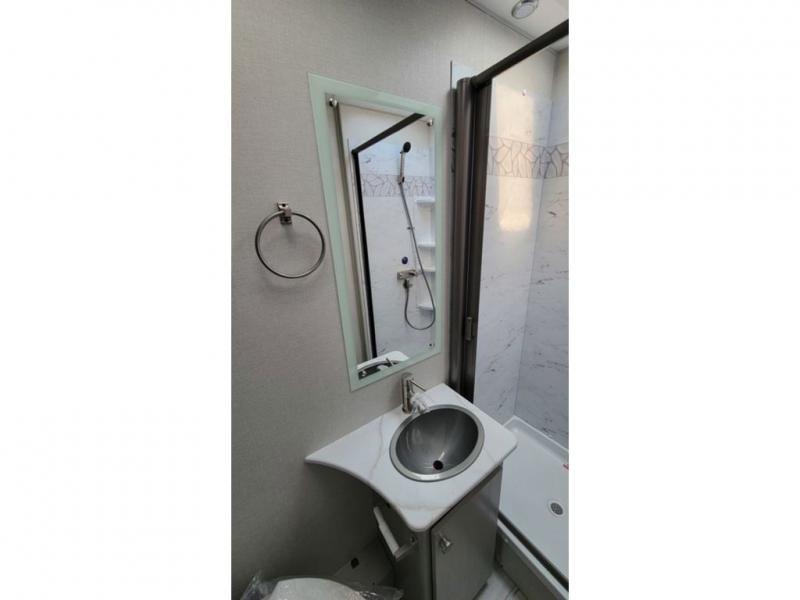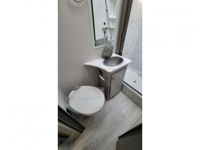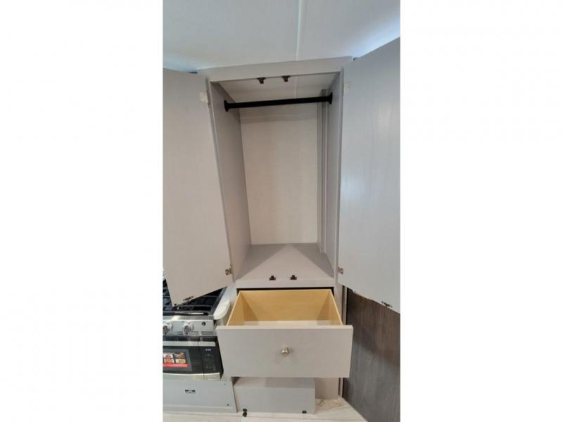 This versatile motorhome features a multi-function bedroom/cargo bay area with a Murphy queen bed which can be stowed away during the day and plenty of overhead cabinets and drawers to store your things. More sleeping space can be found in the bunk area over the cab. The dining area has a spacious 44” x 76” J-lounge with pullout extension for extra room to stretch out. Enjoy cooking with the three-burner cooktop, microwave oven, and stainless steel farmer's kitchen sink with high-rise kitchen faucet.