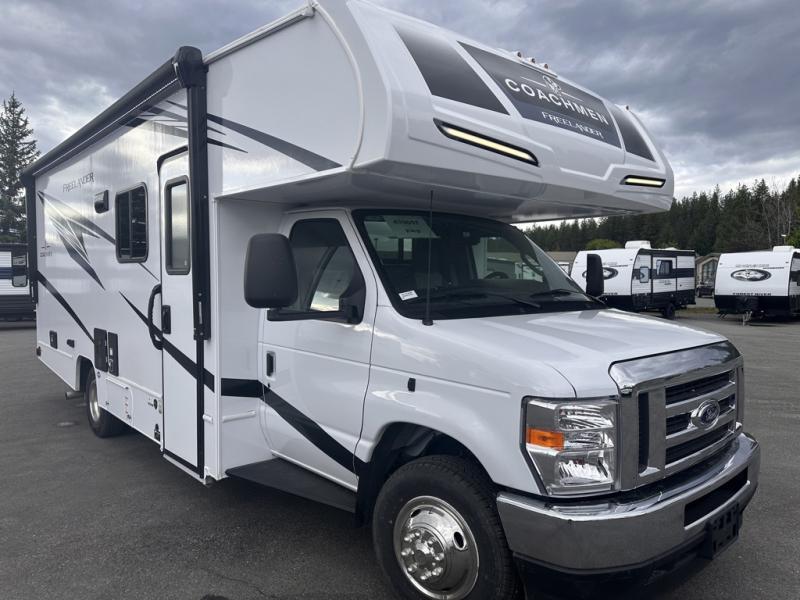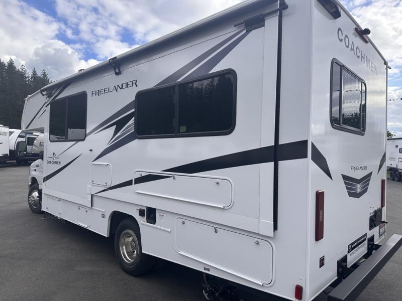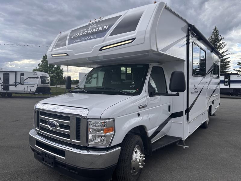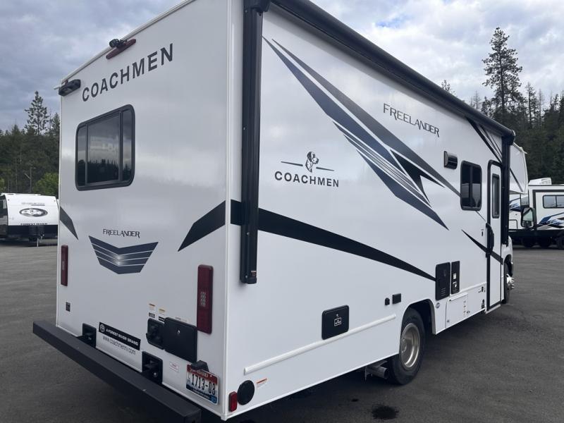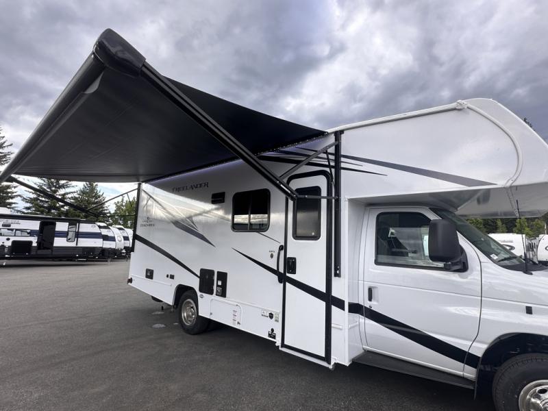 The Freelander Class C gas motorhome by Coachmen is a wonderful choice for anyone looking to get out on the road. A wide variety of floorplans and features offers something for everyone. The Azdel composite sidewalls and seamless one-piece roof membrane provide a solid structure to enjoy all your trips. Conveniences like storage above entrance door with an HDMI and charge station and reclining cockpit seats are standard, along with a rear color backup camera, a premium showerhead and faucet, and one-piece thermofoil countertops. The mandatory Explorer Package includes an exterior shower to rinse off before entering inside and an on-demand tankless water heater for hot water fast. Come find your favorite one today!