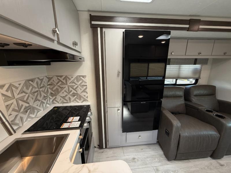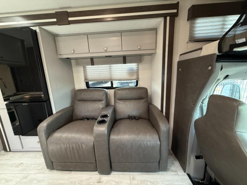 Two slide outs expand your vacation in this fun motorhome! Relax in the living area with a 62” sofa, or swap it out for optional recliners. The J-lounge dinette with an 18” extension provides another space for leisure time or gourmet meals. The kitchen layout feels spacious with two pantries and thermofoil countertops with a flip-down extension for extra prep space. In the rear, you’ll find a queen bed with overhead cabinet and dual nightstands, plus a roomy bath with shower and linen closet. Outside is an awning and you can even add on an optional outdoor kitchen table for more fun in the sun! This model also includes the CRV Supersprings Ride with heavy duty stabilizer bars, chassis electronic stability control, SumoSprings front shock absorbers, and more!