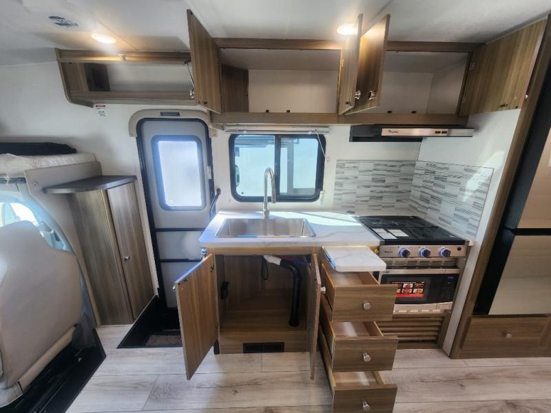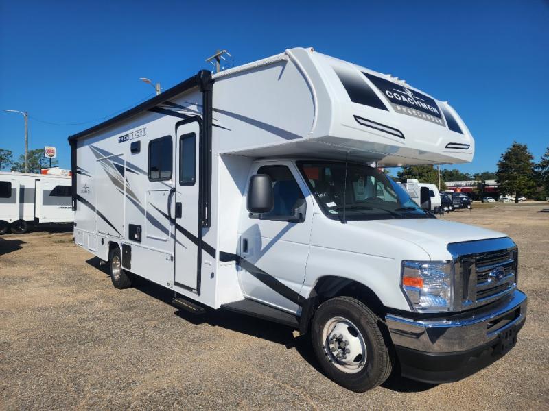 The Freelander Class C gas motorhome by Coachmen is a wonderful choice for anyone looking to get out on the road. A wide variety of floorplans and features offers something for everyone. The Azdel composite sidewalls and seamless one-piece roof membrane provide a solid structure to enjoy all your trips. Conveniences like storage above entrance door with an HDMI and charge station and reclining cockpit seats are standard, along with a rear color backup camera, a premium showerhead and faucet, and one-piece thermofoil countertops. The mandatory Explorer Package includes an exterior shower to rinse off before entering inside and an on-demand tankless water heater for hot water fast. Come find your favorite one today!