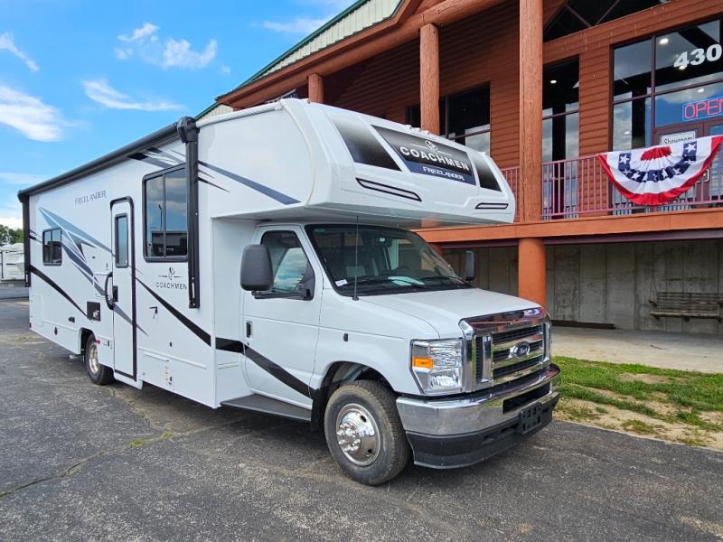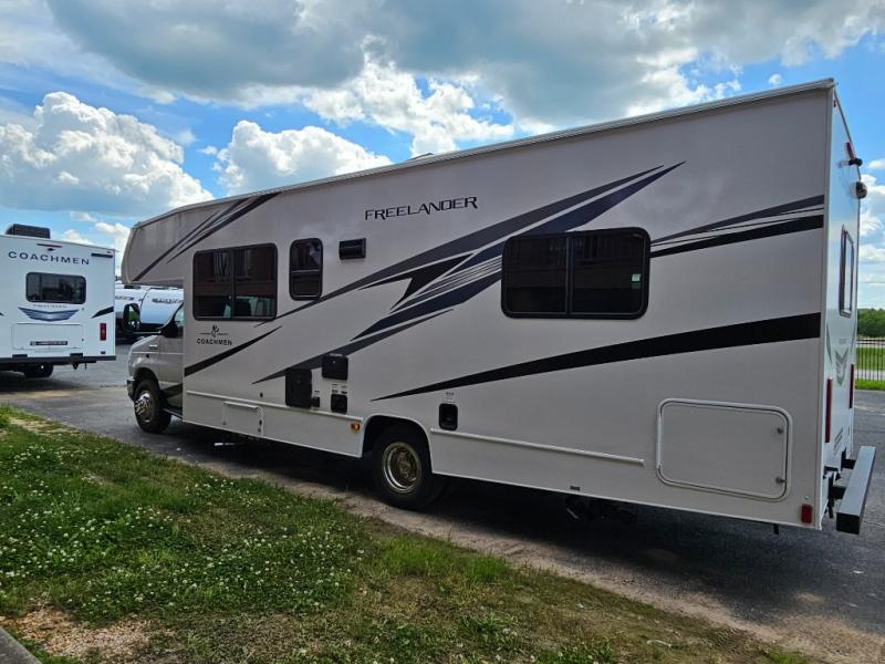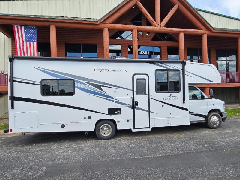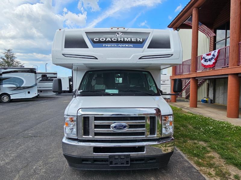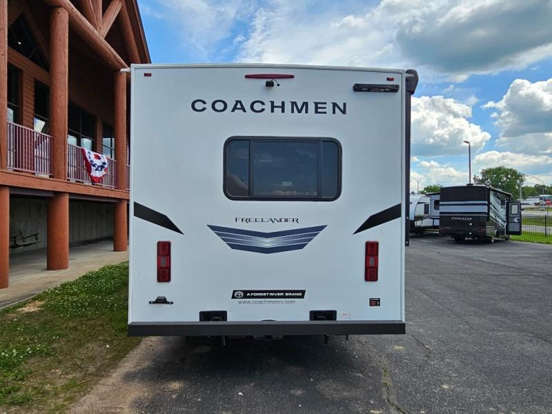 The Freelander Class C gas motorhome by Coachmen is a wonderful choice for anyone looking to get out on the road. A wide variety of floorplans and features offers something for everyone. The Azdel composite sidewalls and seamless one-piece roof membrane provide a solid structure to enjoy all your trips. Conveniences like storage above entrance door with an HDMI and charge station and reclining cockpit seats are standard, along with a rear color backup camera, a premium showerhead and faucet, and one-piece thermofoil countertops. The mandatory Explorer Package includes an exterior shower to rinse off before entering inside and an on-demand tankless water heater for hot water fast. Come find your favorite one today!
