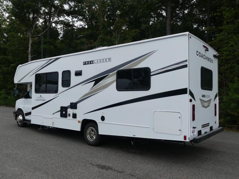 The Freelander Class C gas motorhome by Coachmen is a wonderful choice for anyone looking to get out on the road. A wide variety of floorplans and features offers something for everyone. The Azdel composite sidewalls and seamless one-piece roof membrane provide a solid structure to enjoy all your trips. Conveniences like storage above entrance door with an HDMI and charge station and reclining cockpit seats are standard, along with a rear color backup camera, a premium showerhead and faucet, and one-piece thermofoil countertops. The mandatory Explorer Package includes an exterior shower to rinse off before entering inside and an on-demand tankless water heater for hot water fast. Come find your favorite one today!