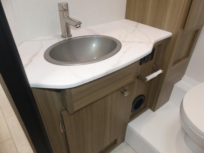 Sneak off for a getaway in this motorhome that has everything you might need! The private rear bedroom has a 60” x 80” queen bed with storage on either side and plenty of room to walk around. The bathroom is split with the shower on one side and the sink and toilet behind a separate door so sharing is a breeze. Relax up front on either the sofa or the roomy 42” x 71” dinette with cabinets above for all your supplies. A bunk over the cab provides yet another sleeping area that will be popular with little ones. Time to get out there in the Freelander!