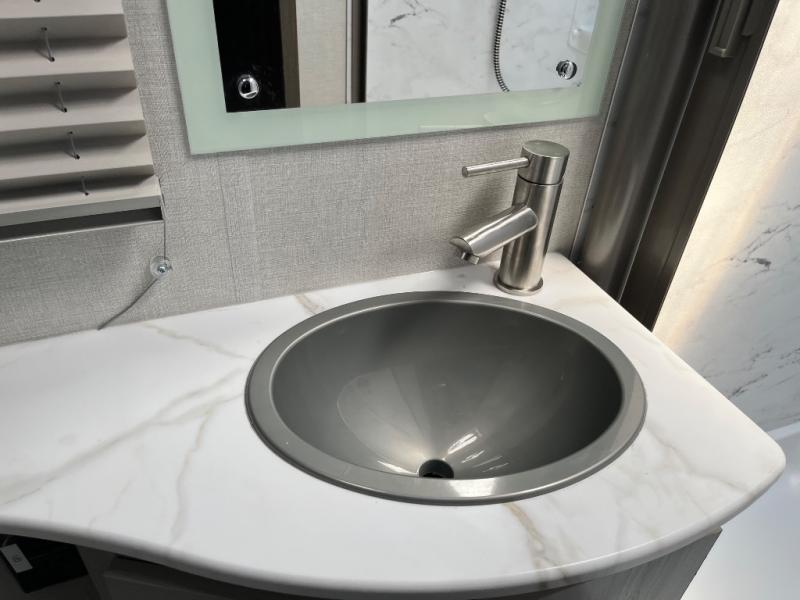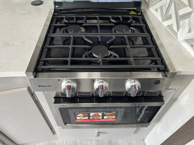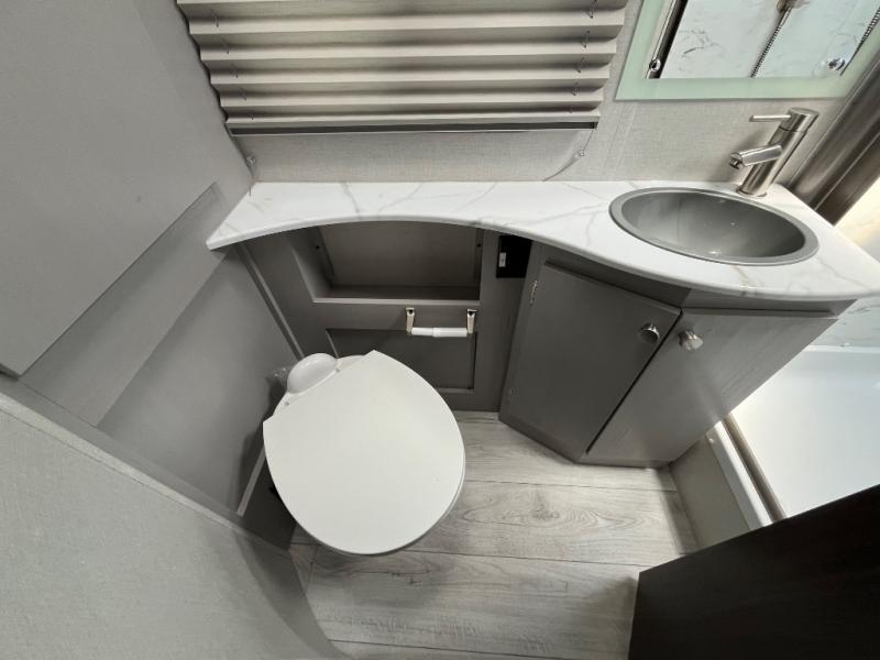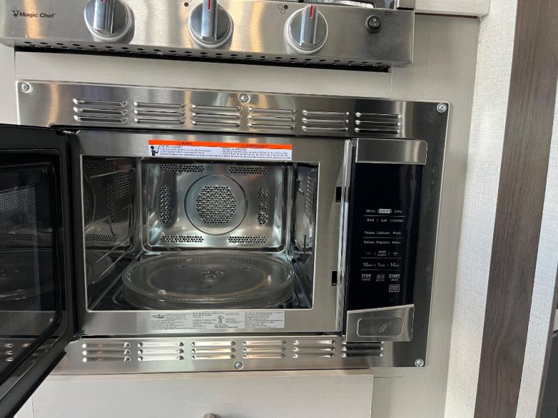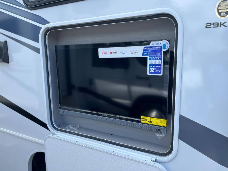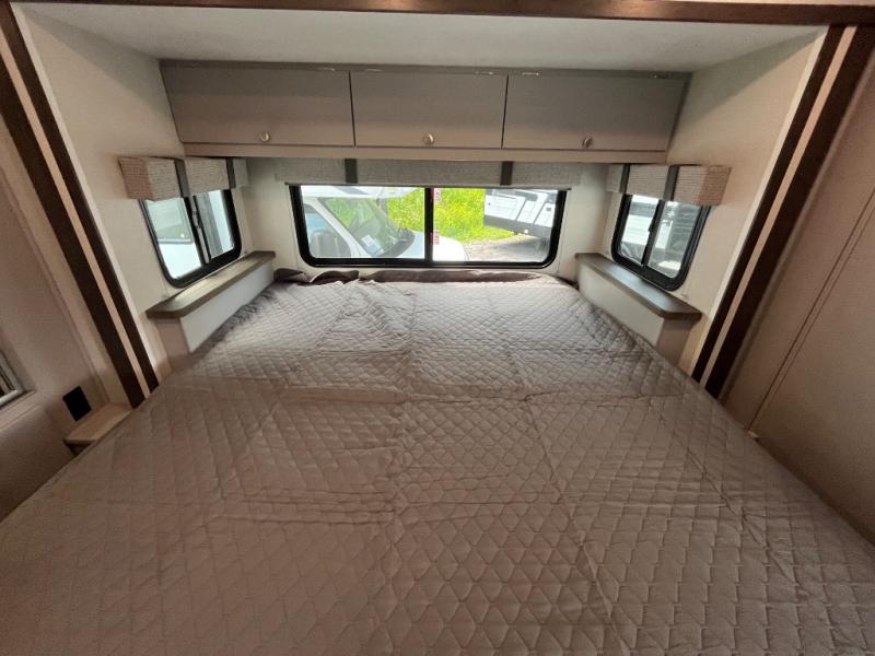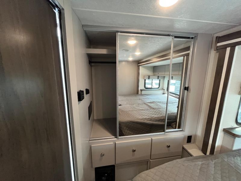 Enjoy many fun trips in this spacious motorhome! Step up to the rear private bedroom with a 72” x 80 king bed, and stow all your clothes in the wardrobe. Adjacent to the bedroom is a rear corner bath with a linen closet which even has room for an optional washer and dryer. The center kitchen has an angled countertop with an extension to allow for maximum cooking space, and a 12V refrigerator stows all your snacks. You’ll enjoy those meals on the J-Lounge or relax on the facing sofa. Overhead you’ll find plentiful cabinets for storage plus a TV. Outside under the power awning is an optional exterior entertainment center. This model also includes the CRV Supersprings Ride with heavy duty stabilizer bars, chassis electronic stability control, SumoSprings front shock absorbers, and more!