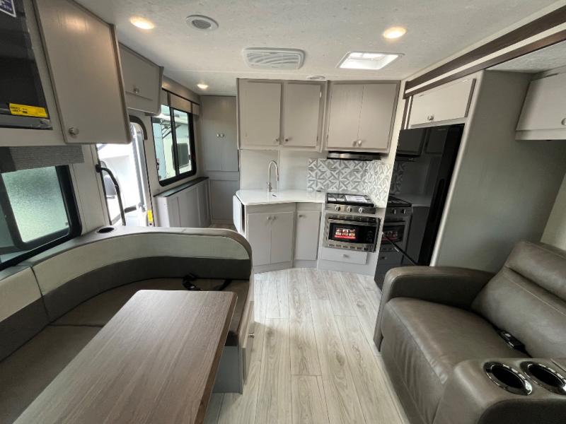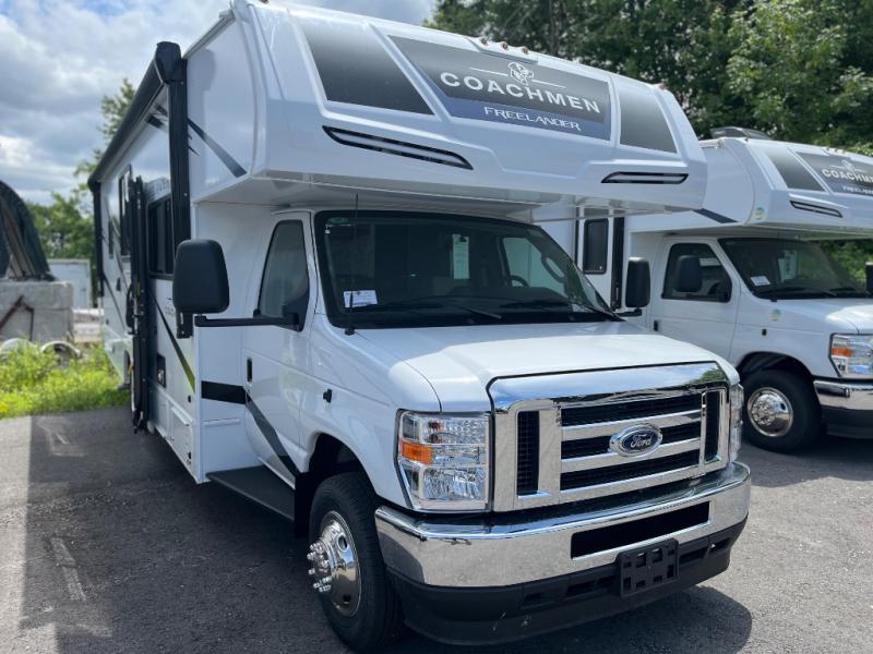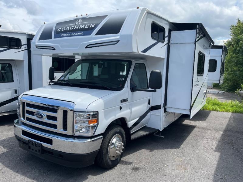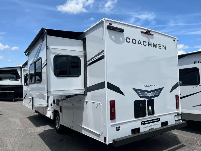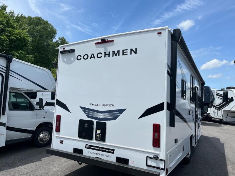 The Freelander Class C gas motorhome by Coachmen is a wonderful choice for anyone looking to get out on the road. A wide variety of floorplans and features offers something for everyone. The Azdel composite sidewalls and seamless one-piece roof membrane provide a solid structure to enjoy all your trips. Conveniences like storage above entrance door with an HDMI and charge station and reclining cockpit seats are standard, along with a rear color backup camera, a premium showerhead and faucet, and one-piece thermofoil countertops. The mandatory Explorer Package includes an exterior shower to rinse off before entering inside and an on-demand tankless water heater for hot water fast. Come find your favorite one today!