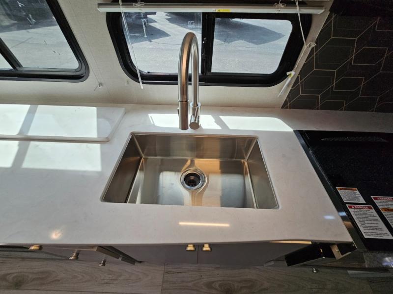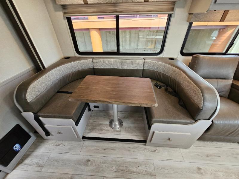 Perfect indoor and outdoor spaces define this great motorhome! Inside you’ll feel right at home with a spacious living area. The sofa faces the TV which is on a lift so can be tucked away out of sight when you aren’t watching. The U-dinette offers even more space for the whole family to enjoy meals cooked in the kitchen. A mid-coach bath can be used by two people at once as the shower is across the hall from the toilet/sink room. A rear bedroom with queen bed and roomy wardrobes lets you bring many changes of clothes. Step outside under the power patio awning with LED light, or add on the optional camp kitchen so you can cook under the open sky. There is even an optional outside entertainment center if you enjoy watching the big game outdoors! This model also includes the CRV Supersprings Ride with heavy duty stabilizer bars, chassis electronic stability control, SumoSprings front shock absorbers, and more!