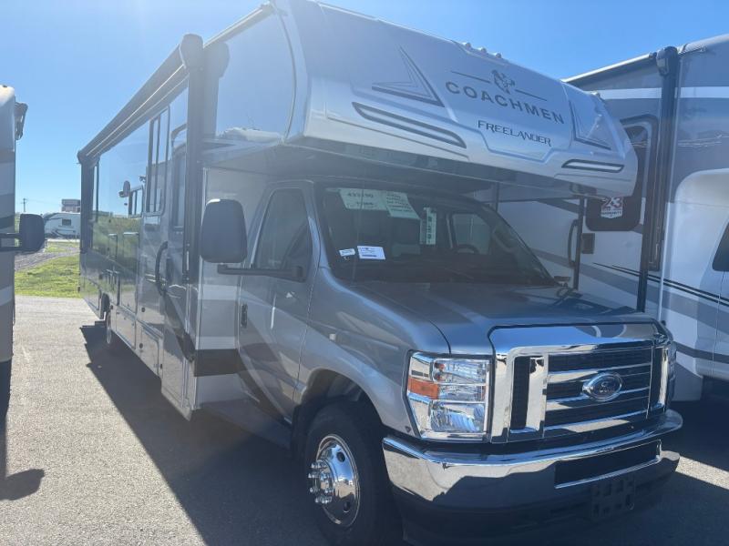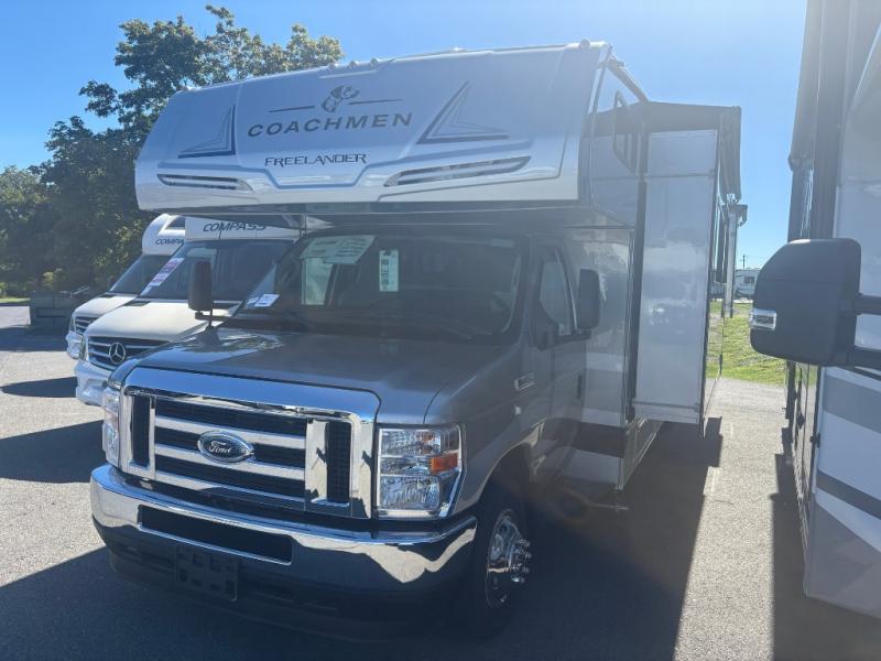 The Freelander Class C gas motorhome by Coachmen is a wonderful choice for anyone looking to get out on the road. A wide variety of floorplans and features offers something for everyone. The Azdel composite sidewalls and seamless one-piece roof membrane provide a solid structure to enjoy all your trips. Conveniences like storage above entrance door with an HDMI and charge station and reclining cockpit seats are standard, along with a rear color backup camera, a premium showerhead and faucet, and one-piece thermofoil countertops. The mandatory Explorer Package includes an exterior shower to rinse off before entering inside and an on-demand tankless water heater for hot water fast. Come find your favorite one today!