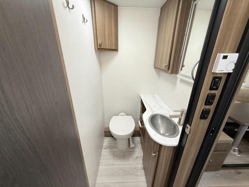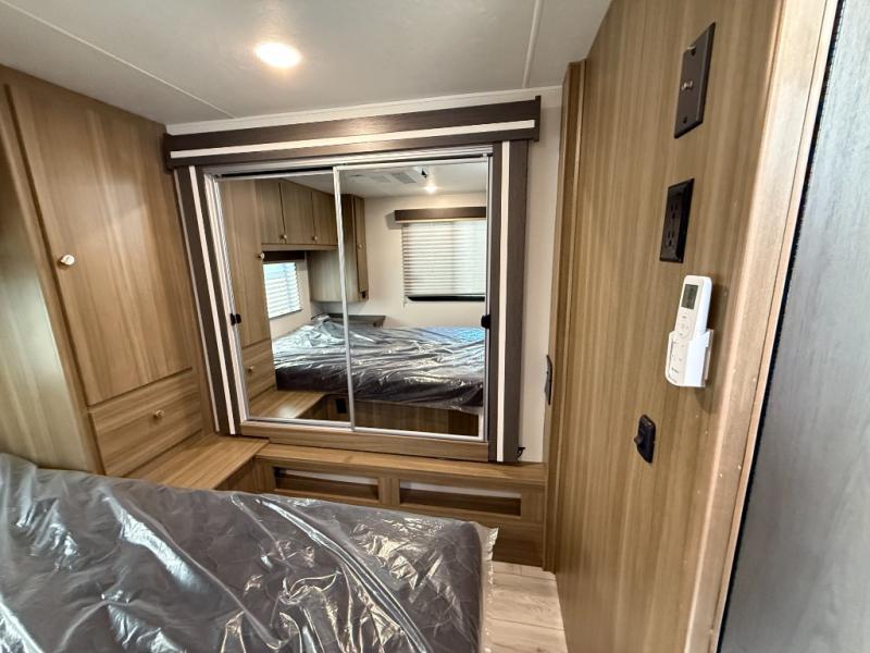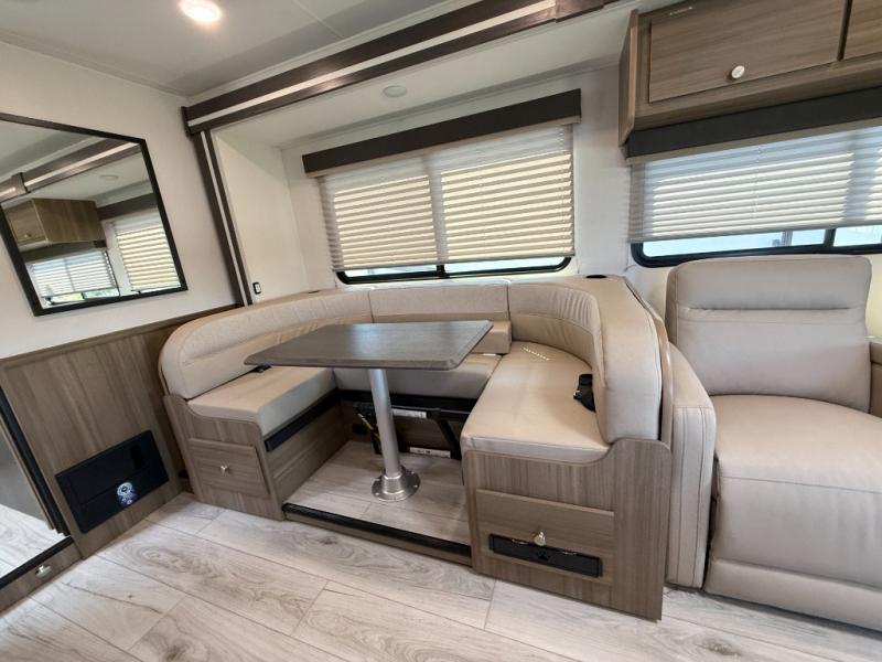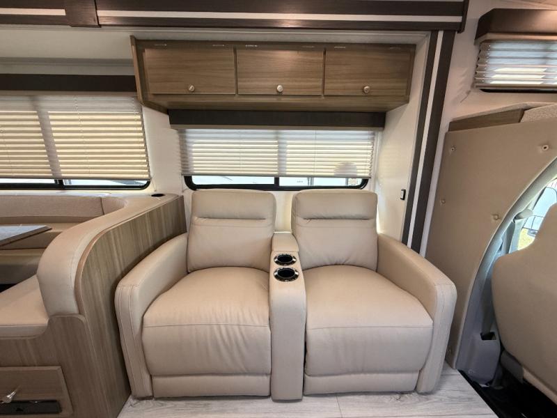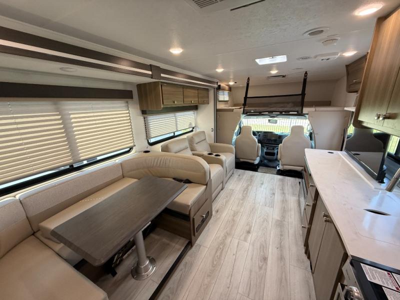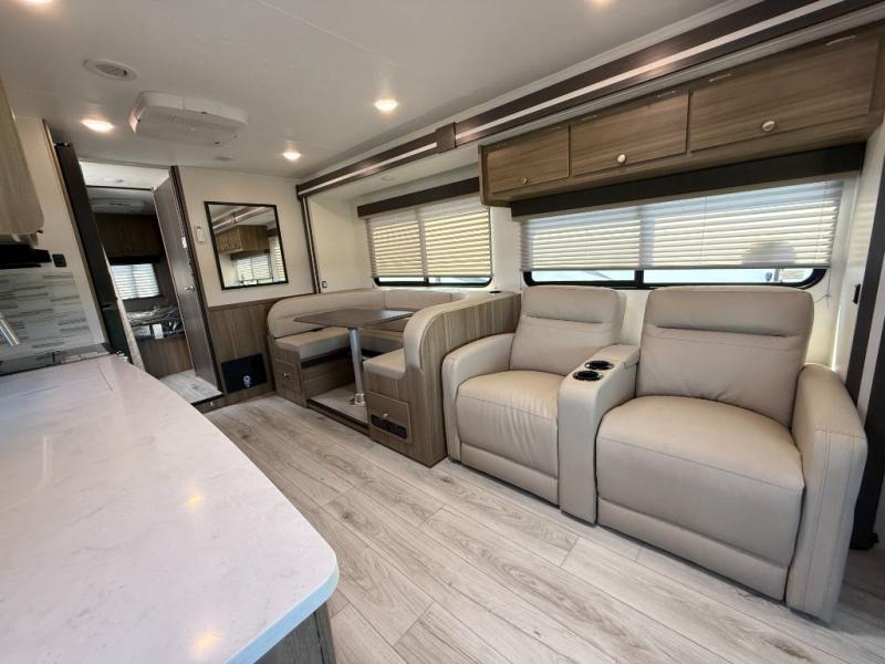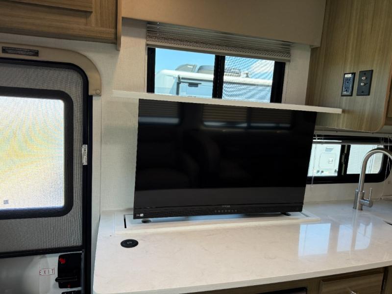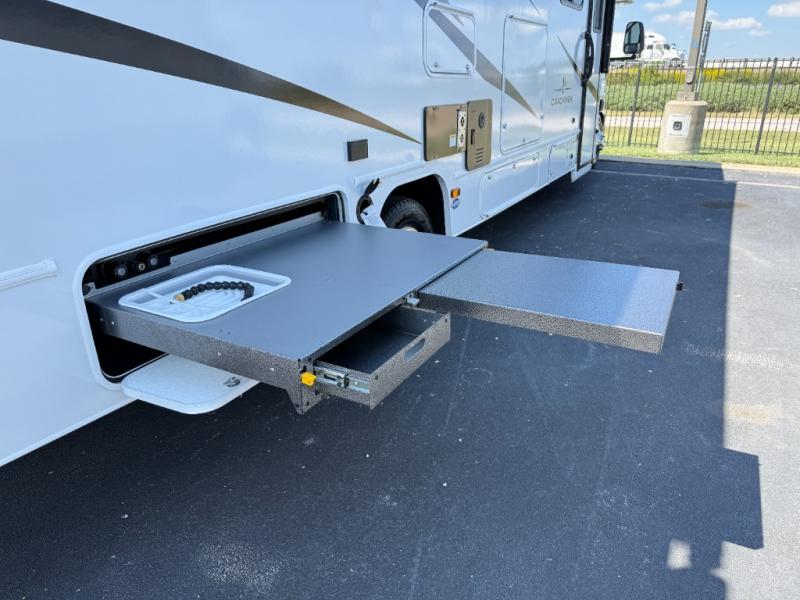 Perfect indoor and outdoor spaces define this great motorhome! Inside you’ll feel right at home with a spacious living area. The sofa faces the TV which is on a lift so can be tucked away out of sight when you aren’t watching. The U-dinette offers even more space for the whole family to enjoy meals cooked in the kitchen. A mid-coach bath can be used by two people at once as the shower is across the hall from the toilet/sink room. A rear bedroom with queen bed and roomy wardrobes lets you bring many changes of clothes. Step outside under the power patio awning with LED light, or add on the optional camp kitchen so you can cook under the open sky. There is even an optional outside entertainment center if you enjoy watching the big game outdoors! This model also includes the CRV Supersprings Ride with heavy duty stabilizer bars, chassis electronic stability control, SumoSprings front shock absorbers, and more!