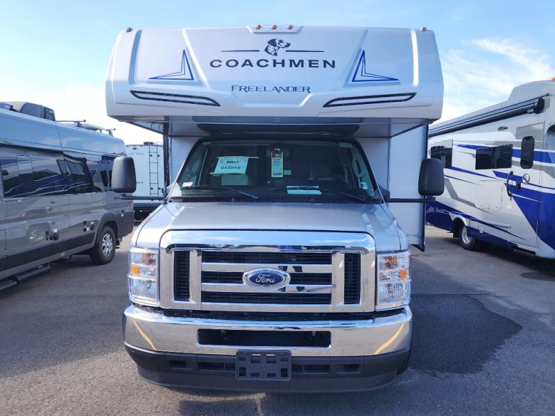 The Freelander Class C gas motorhome by Coachmen is a wonderful choice for anyone looking to get out on the road. A wide variety of floorplans and features offers something for everyone. The Azdel composite sidewalls and seamless one-piece roof membrane provide a solid structure to enjoy all your trips. Conveniences like storage above entrance door with an HDMI and charge station and reclining cockpit seats are standard, along with a rear color backup camera, a premium showerhead and faucet, and one-piece thermofoil countertops. The mandatory Explorer Package includes an exterior shower to rinse off before entering inside and an on-demand tankless water heater for hot water fast. Come find your favorite one today!